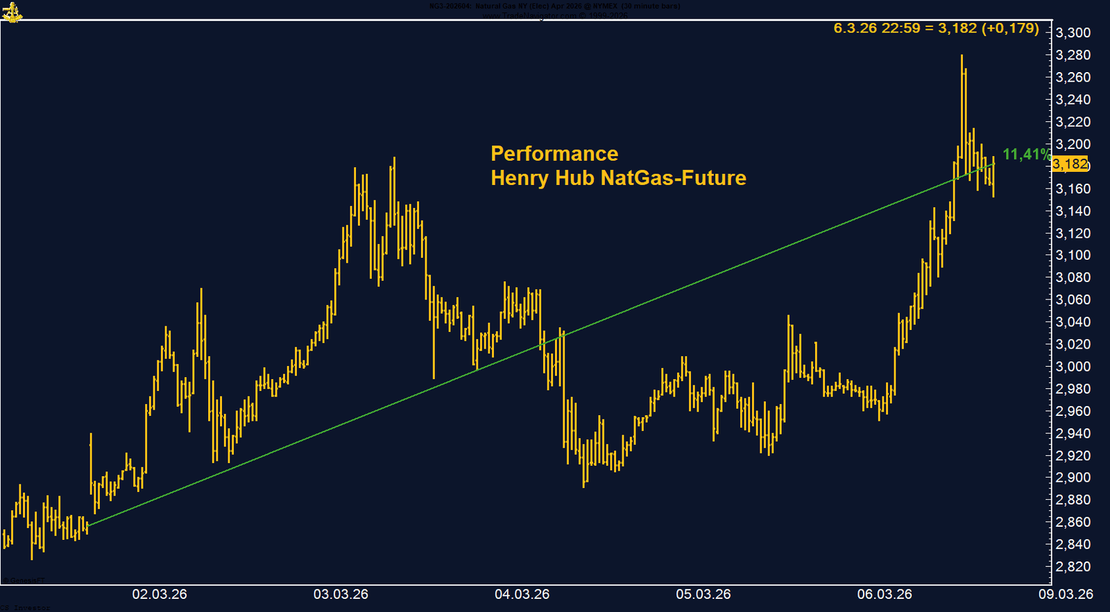 Henry Hub gewinnt auf Wochenbasis 11,41%.
