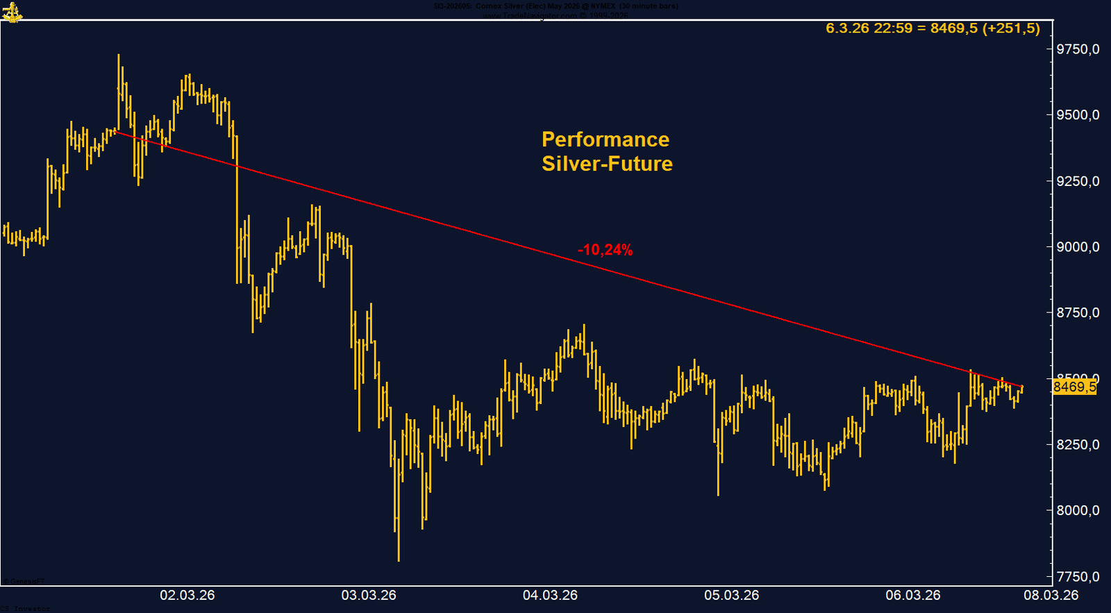 Der Silber-Future verliert auf Wochenbasis -10,24%.