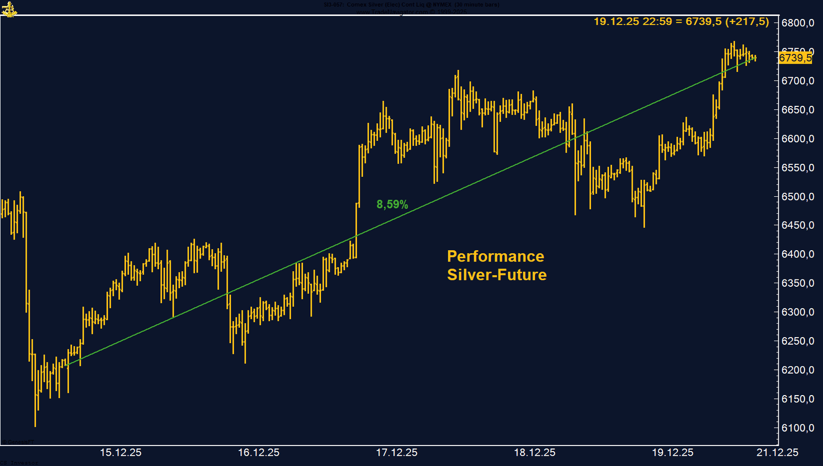 Der jüngste Rücksetzer ist bislang nichts weiter als eine überfällige Verschnaufpause nach einem extrem steilen Anstieg. Weder die Preisstruktur noch die Positionierung liefern aktuell ein belastbares Top-Signal. Solange Rücksetzer gekauft werden und die saisonale Phase intakt bleibt, bleibt Silber einer der spannendsten – und explosivsten – Rohstoffmärkte zum Jahresende.