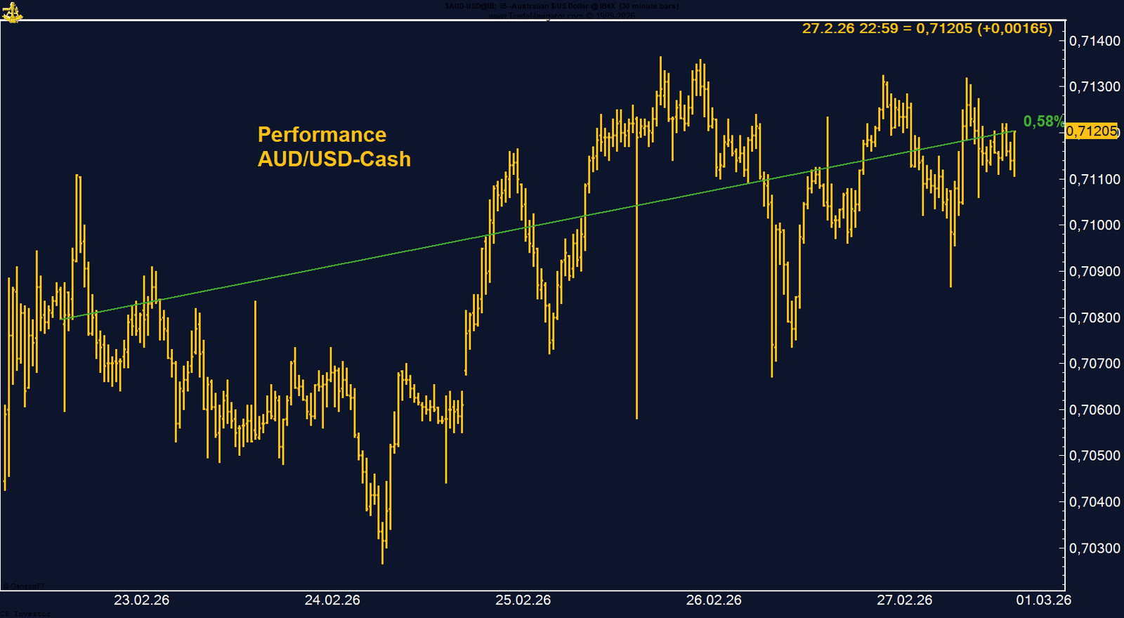 Technisch bewegt sich der AUD nahe mehrjähriger Hochs im Bereich von 0,71–0,714. Ein nachhaltiger Ausbruch über diese Zone würde das Momentum weiter verstärken. Gleichzeitig wirkt der Renditevorsprung australischer Anleihen gegenüber den USA weiterhin unterstützend.