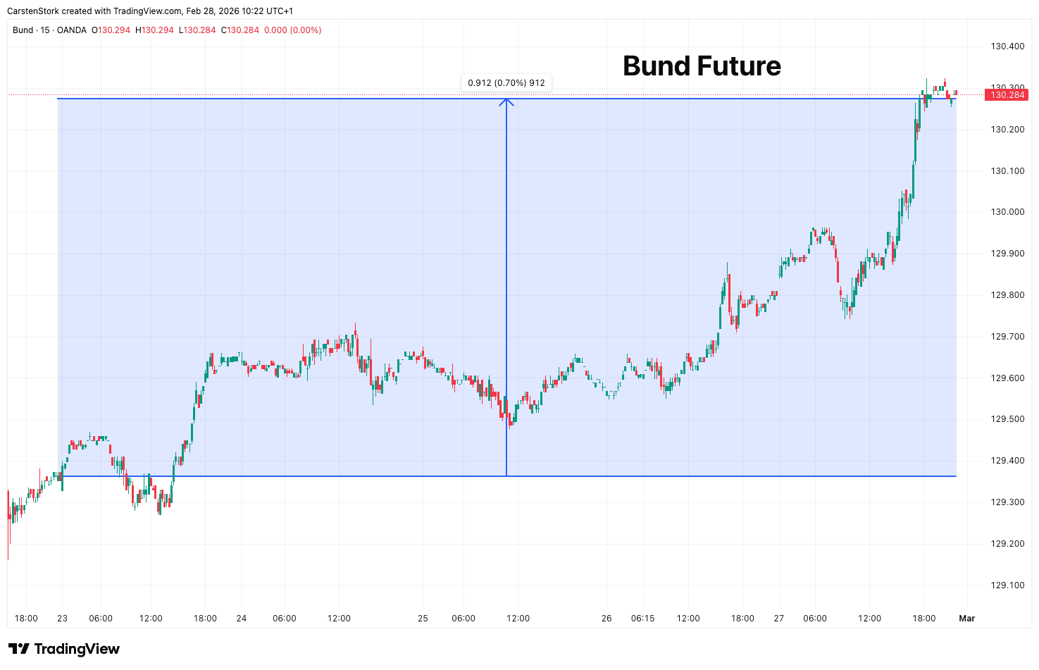 Unabhängig vom konkreten Verlauf der nächsten Stunden ist davon auszugehen, dass der Markt bei Wiederaufnahme des Handels am Sonntagabend mit erhöhter Volatilität reagieren wird. Das Risiko einer deutlichen Aufwärtslücke ist signifikant gestiegen.