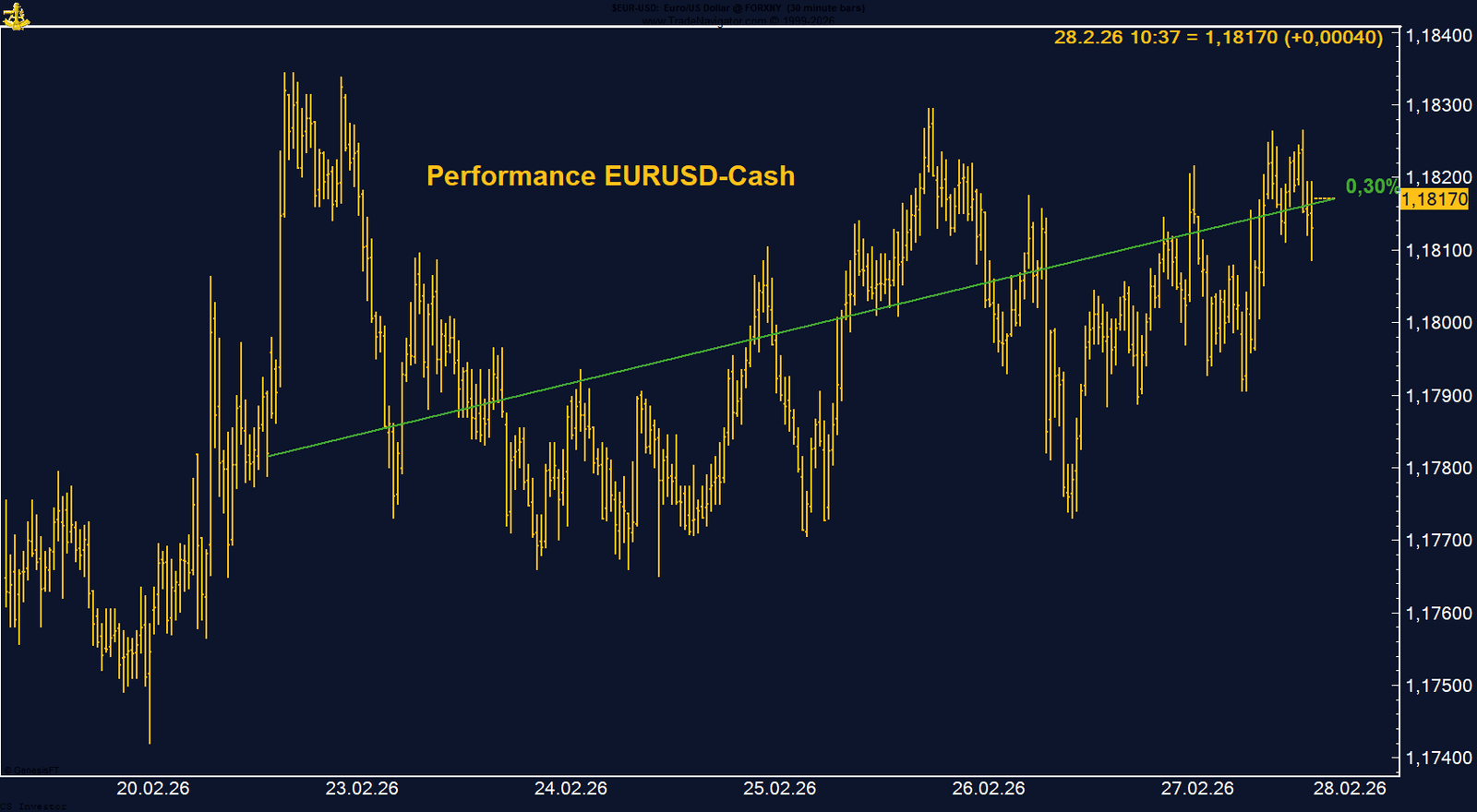 Zentral war das leicht rückläufige Renditeumfeld. Die Rendite der 10-jährigen Bundesanleihe fiel auf rund 2,69 % und liegt damit spürbar unter dem Niveau von vor einem Monat. Auch am langen Ende gaben die Renditen nach. Sinkende Renditen bedeuten steigende Kurse – entsprechend profitierte der Bund-Future. Gleichzeitig engten sich die Spreads innerhalb der Eurozone leicht ein, was zusätzlich Stabilität brachte.