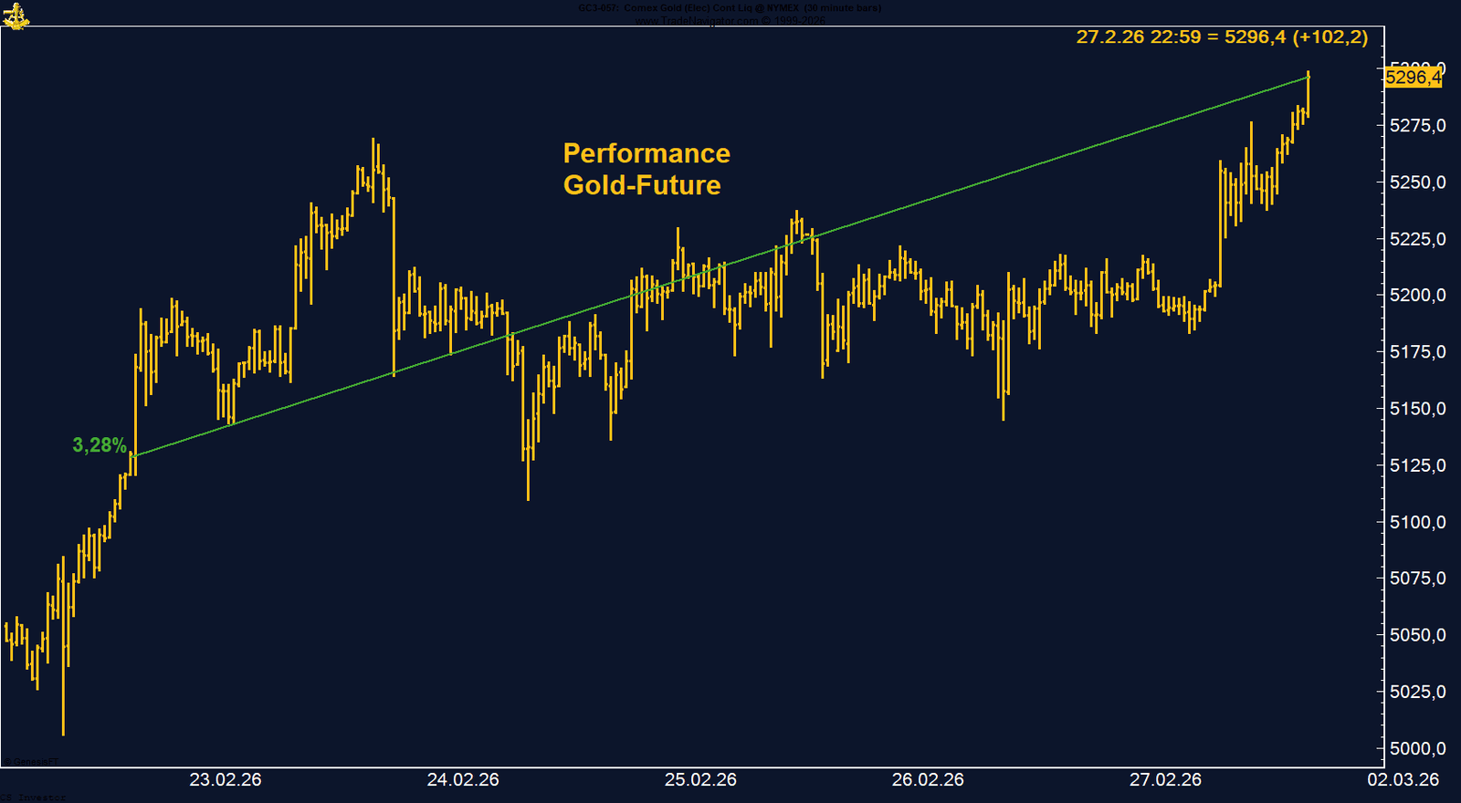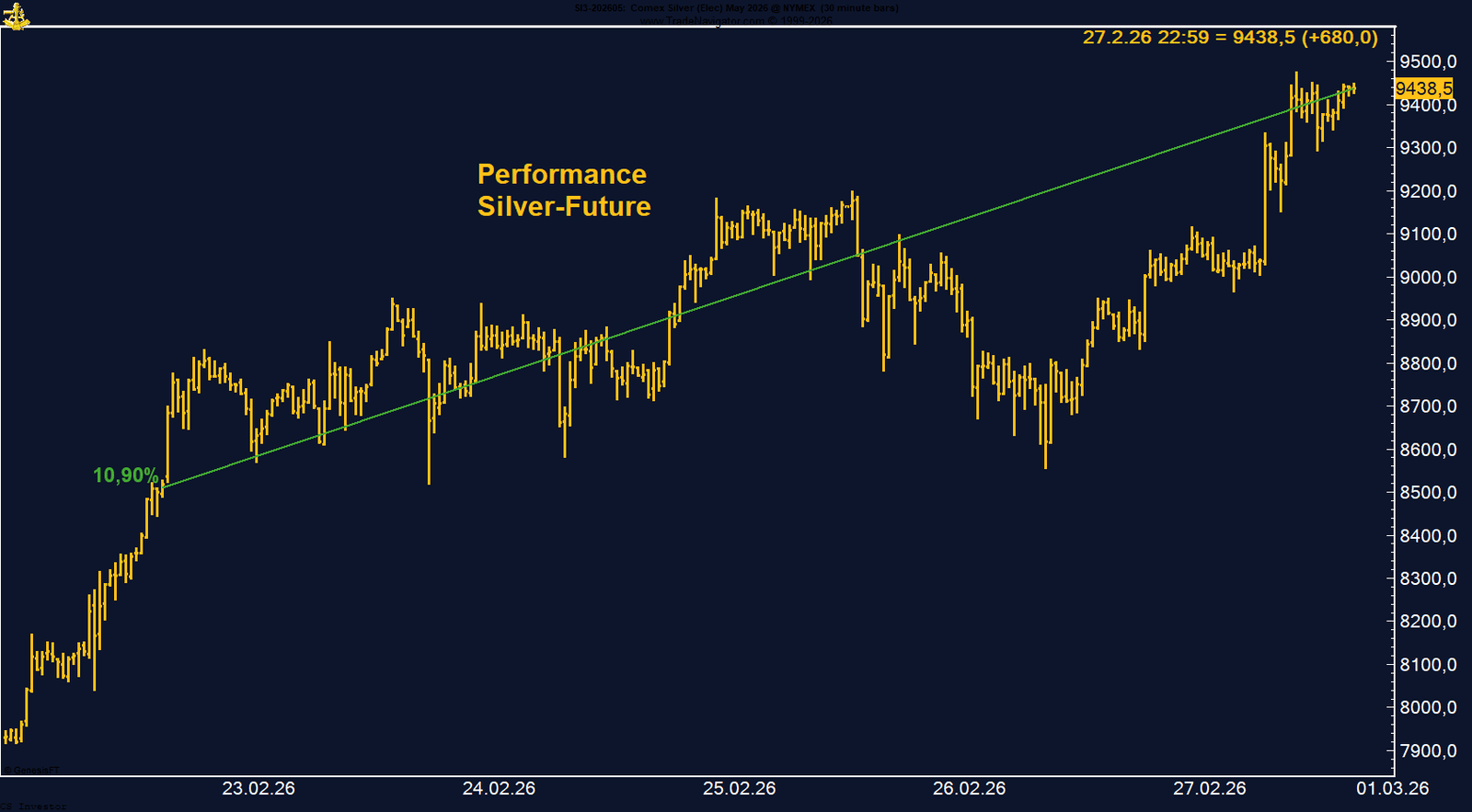 Gold bleibt in diesem Umfeld der zentrale Referenzpunkt für Safe-Haven-Positionierung. Die Wahrscheinlichkeit einer festen Eröffnung ist hoch, nicht zwingend wegen eines einzelnen Schlagzeilen-Impulses, sondern weil Anleger in Stressphasen Liquidität und Schutz suchen. Gleichzeitig ist der Markt nach dem starken Lauf bereits sensibel für Übertreibungen und schnelle Gegenbewegungen. Genau deshalb wird die Eröffnung weniger eine Richtungsentscheidung „für Wochen“, sondern zunächst ein Stresstest für die Preisbildung unter Unsicherheit.
