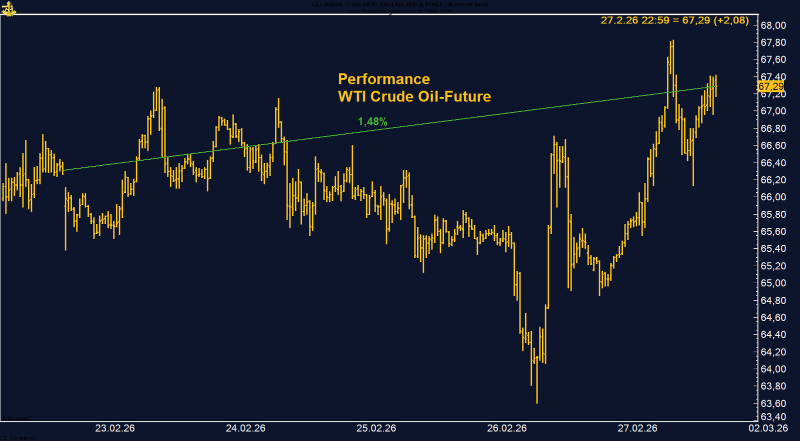 Entscheidend ist nun die Eskalation zwischen den USA, Israel und dem Iran. Die begonnenen militärischen Aktionen sorgen für massive Unsicherheit. Zum aktuellen Zeitpunkt – Sonntagmittag UAE-Zeit – stehen zahlreiche Szenarien im Raum. Besonders kritisch wäre eine mögliche Beeinträchtigung oder gar Schließung der Straße von Hormuz. Eine solche Entwicklung würde unmittelbare Angebotsrisiken für den globalen Ölmarkt bedeuten und könnte eine starke Aufwärtsreaktion im WTI auslösen.