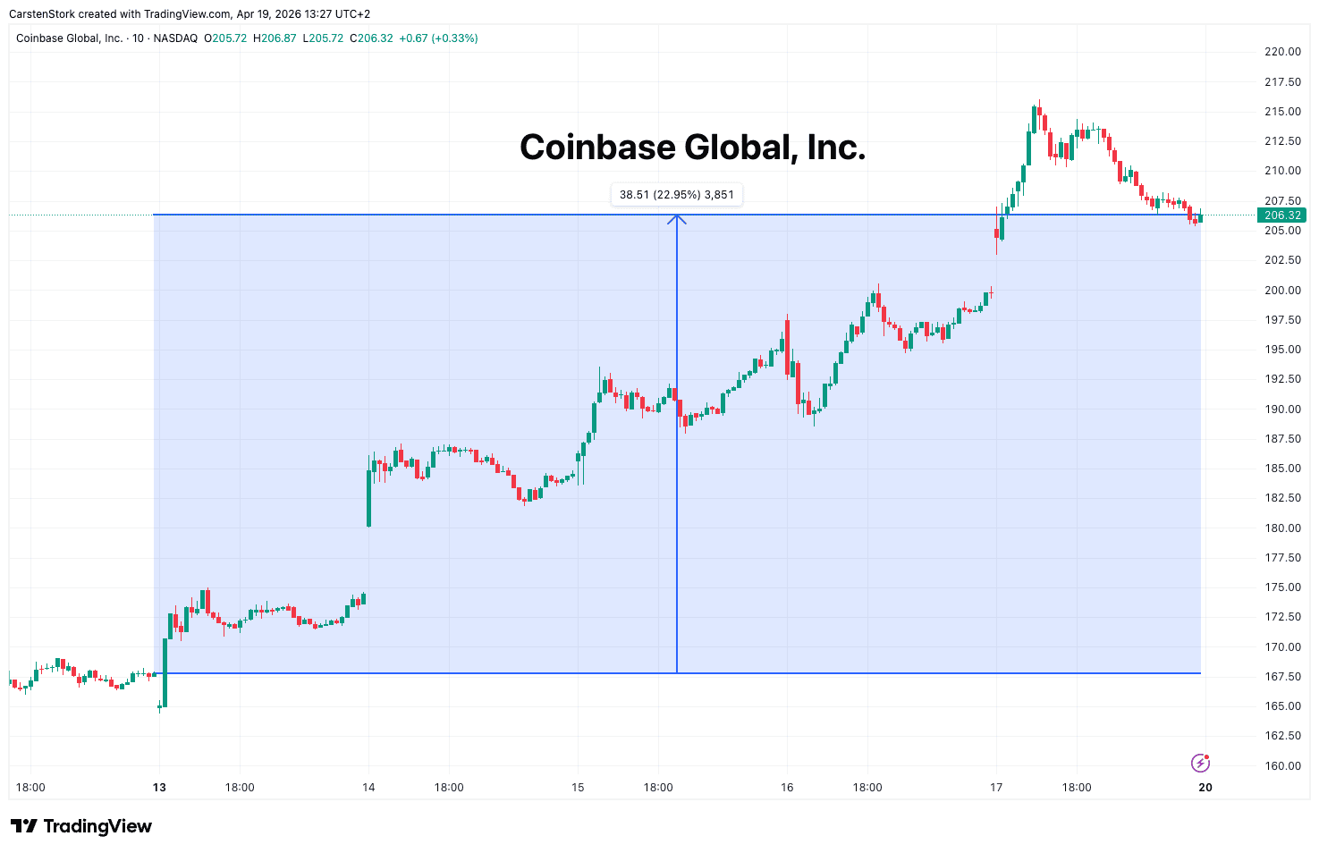 • Coinbase Global | +22,95 % | Long