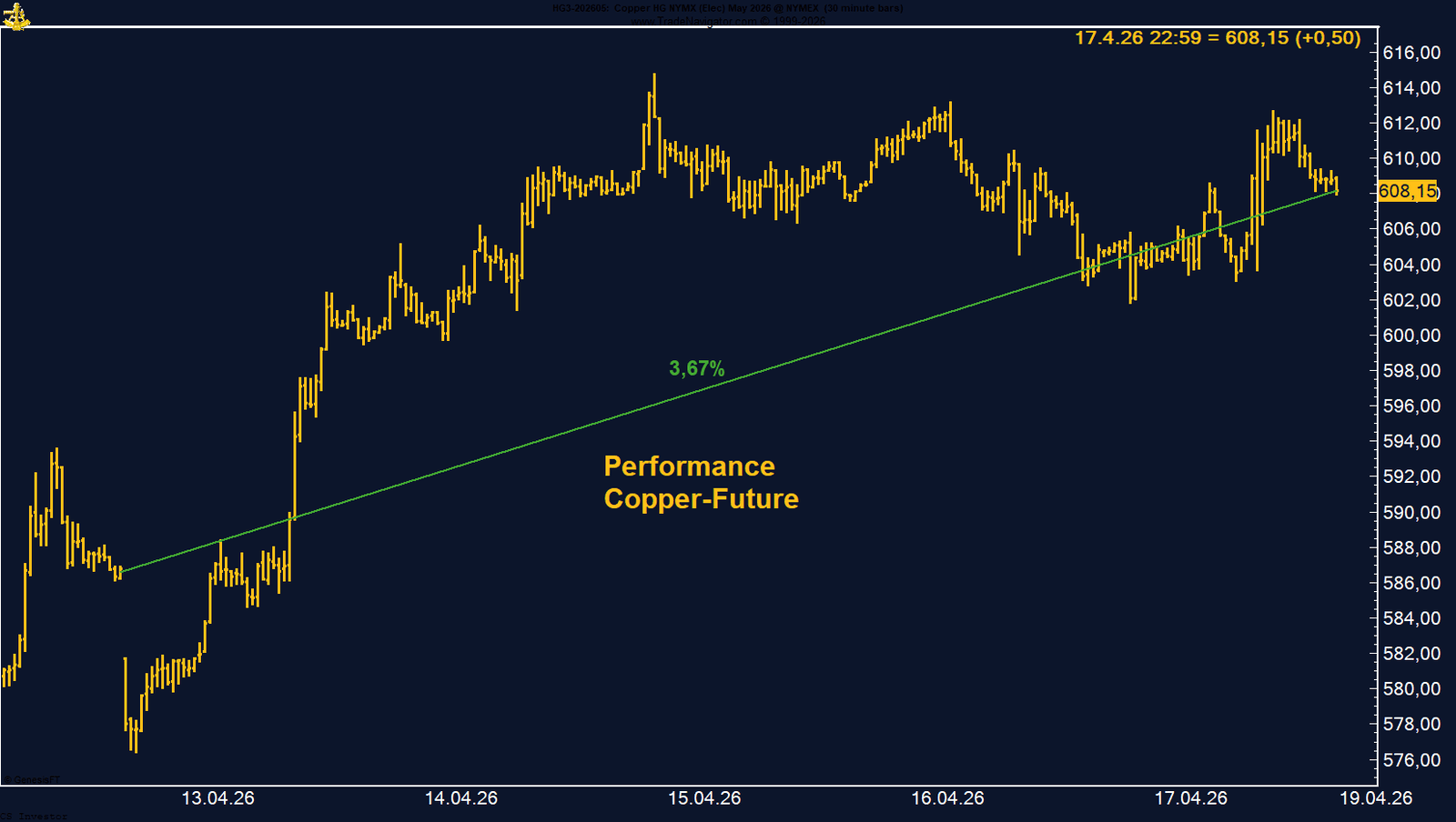 Saisonal nähert sich der Markt jedoch einem wichtigen Wendepunkt. Historisch erreicht Kupfer gegen Ende April sein saisonales Hoch, bevor es in eine schwächere Phase bis in den Juni hinein übergeht. Dieses Muster steht aktuell im Kontrast zur starken fundamentalen Lage und macht den Markt kurzfristig anfälliger für Korrekturen.
