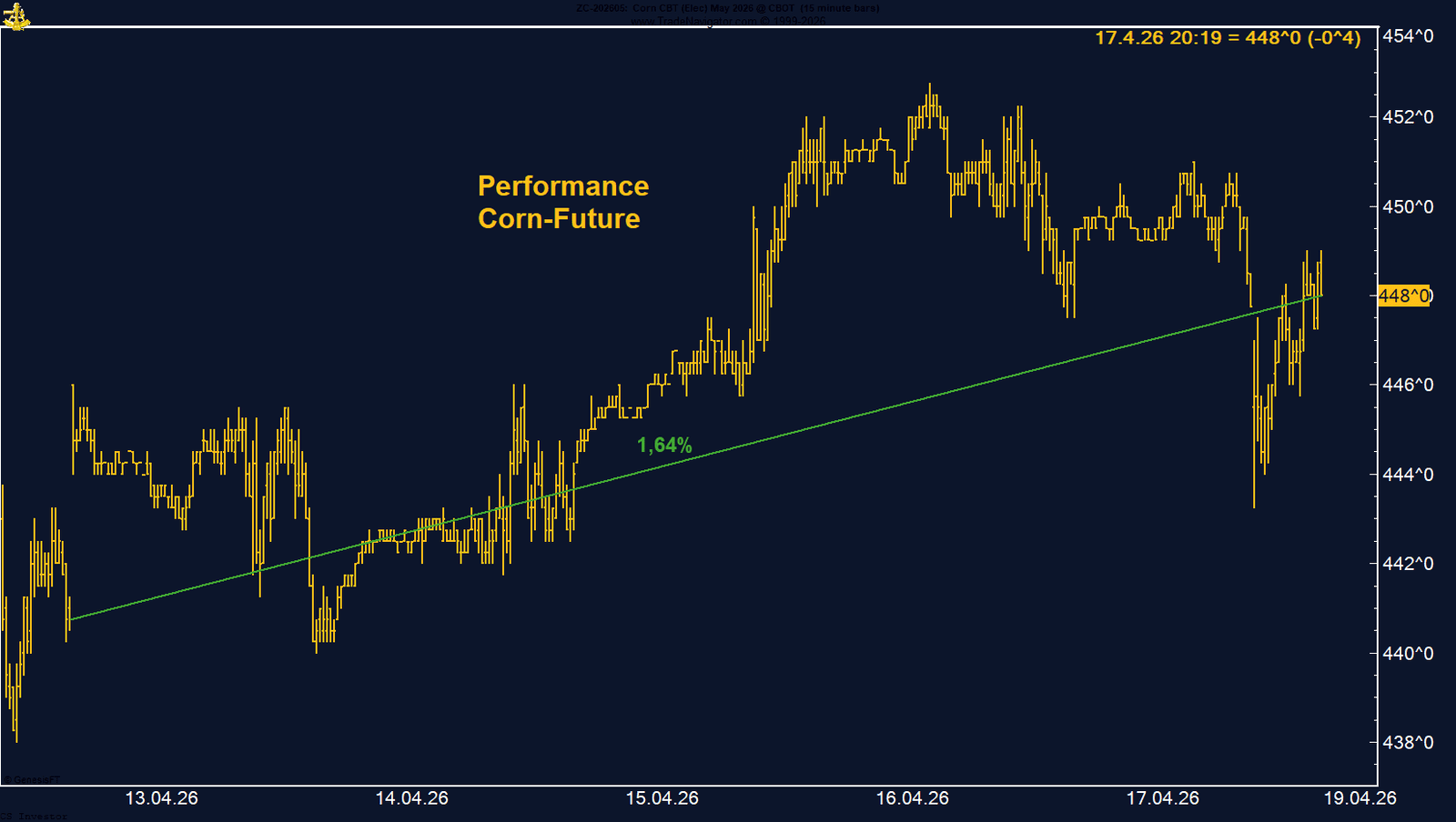 Zusätzliche Impulse kamen von der Wetterseite. Regenfälle im US-Midwest haben die Feldarbeit und frühe Aussaat verzögert, was kurzfristig eine Risikoprämie in den Markt gebracht hat. Gleichzeitig halten sich Farmer mit Verkäufen zurück, was den Markt stabilisiert, ohne jedoch eine klare Aufwärtsdynamik zu erzeugen.