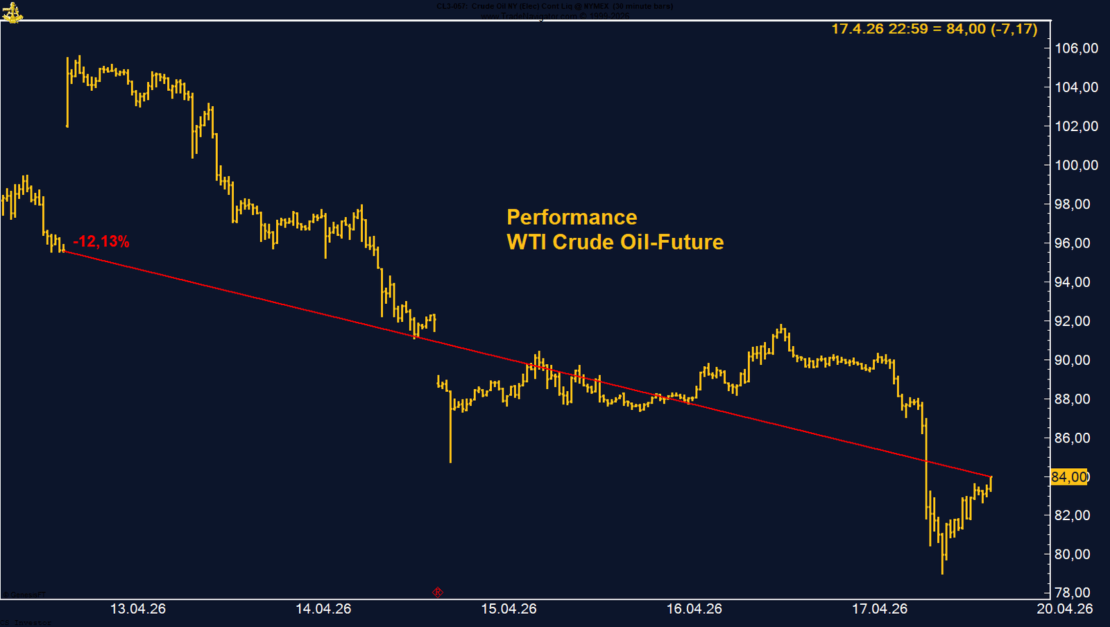 WTI Crude Oil verliert auf Wochenbasis -12,12%.