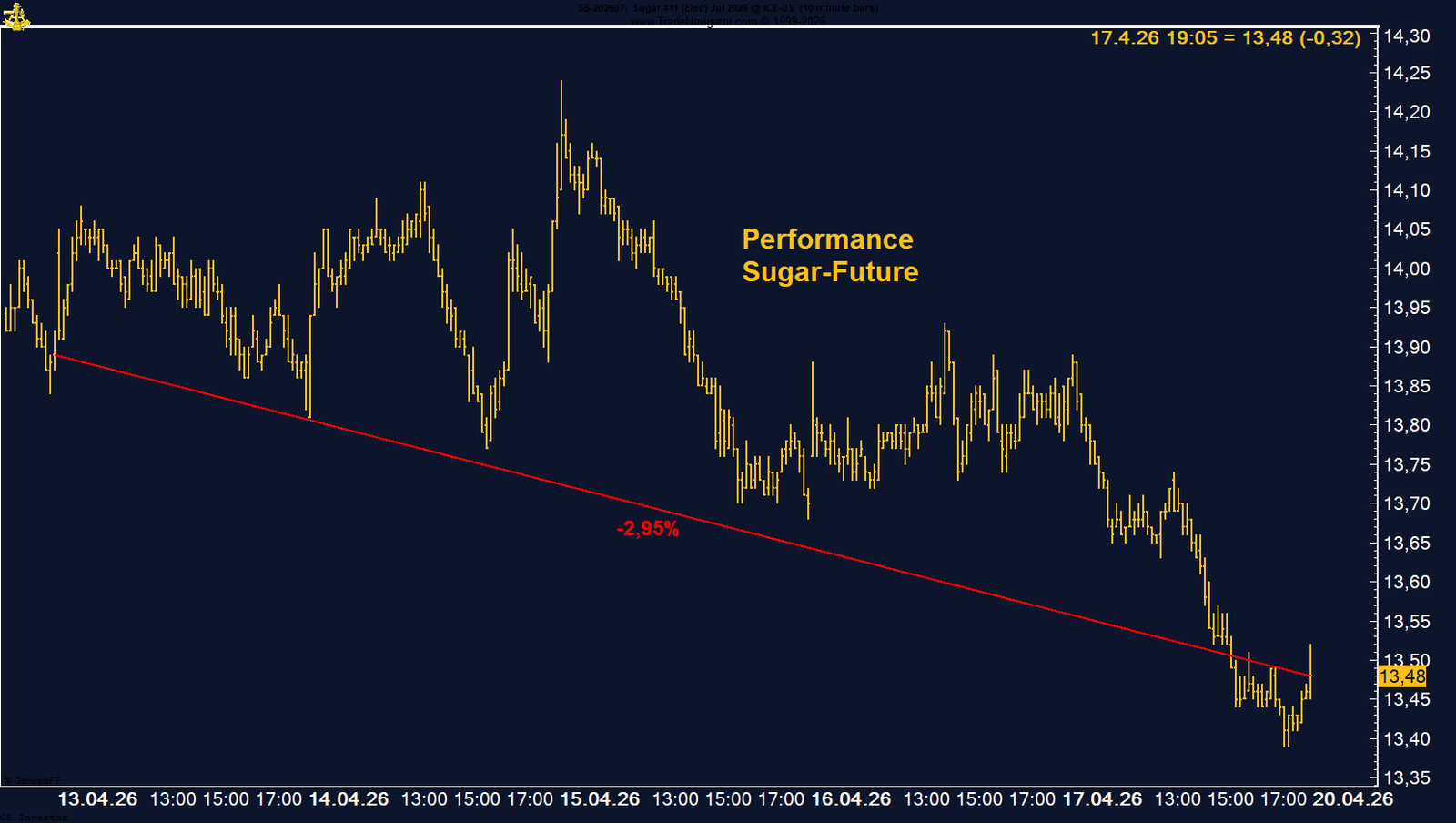 Zucker verliert auf Wochenbasis -2,95%.