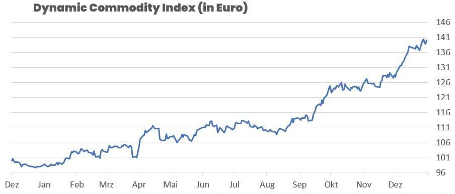 Der DCX zeigte in der abgelaufenen Handelswoche eine sehr starke Entwicklung und legte um +2,47 % auf 140,00 Punkte zu. Damit startet der Index positiv ins Jahr 2026 und liegt seit Jahresbeginn bei +1,29 %, während die Performance seit Auflegung am 10. Dezember 2024 inzwischen +40,14 % erreicht. Auffällig war dabei vor allem die breite Beteiligung mehrerer Sektoren – insbesondere Metalle –, während einzelne Agrarmärkte weiterhin durch Geduld und Seitwärtsphasen geprägt sind.
