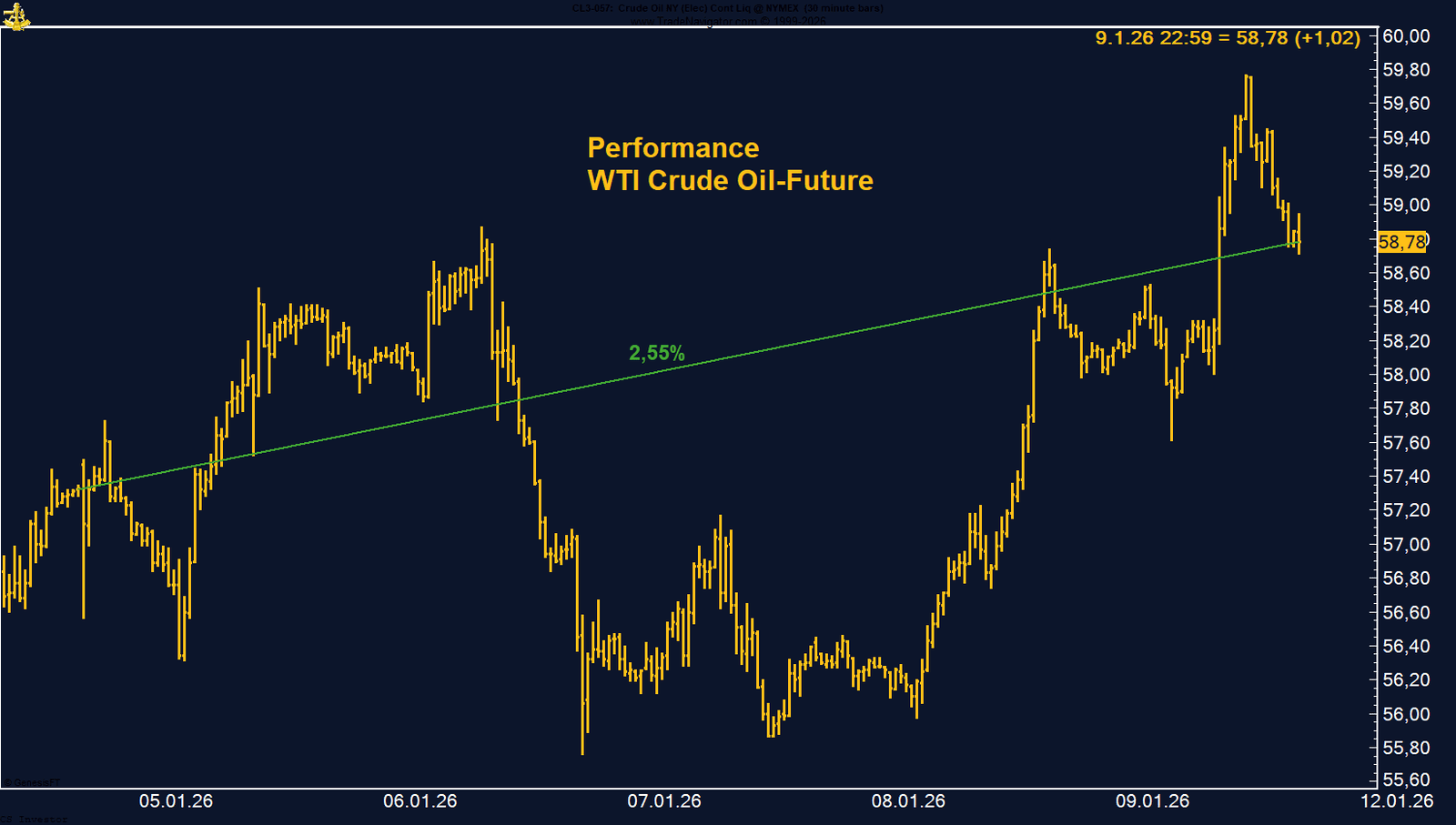 Treiber der Bewegung waren klar geopolitischer Natur. Die Eskalation der Proteste im Iran, zunehmende Unsicherheit rund um russische Exporte im Kontext des Ukraine-Krieges sowie weiterhin offene Fragen zur tatsächlichen Verfügbarkeit venezolanischer Lieferungen haben den Risikoaufschlag im Ölmarkt wieder erhöht. Diese Faktoren haben den Markt kurzfristig gezwungen, die bislang dominierende Überschuss-Narrative zumindest teilweise zu hinterfragen.