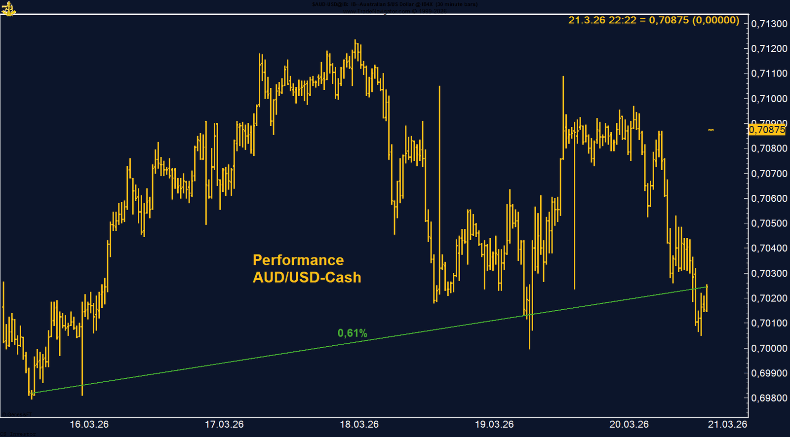 Unterstützend wirkte vor allem die veränderte Erwartungshaltung hinsichtlich der Geldpolitik in Australien. Die jüngsten Zinsschritte der Reserve Bank of Australia sowie weiterhin bestehende Inflationsrisiken im Zuge steigender Energiepreise sorgen für eine festere Renditestruktur und erhöhen die Attraktivität des Austral-Dollars gegenüber dem US-Dollar. Gleichzeitig zeigt sich, dass der Markt zunehmend davon ausgeht, dass die australische Notenbank einen restriktiveren Kurs länger beibehalten könnte.