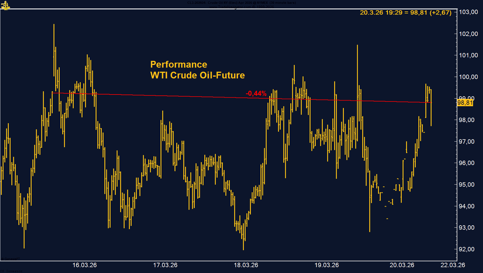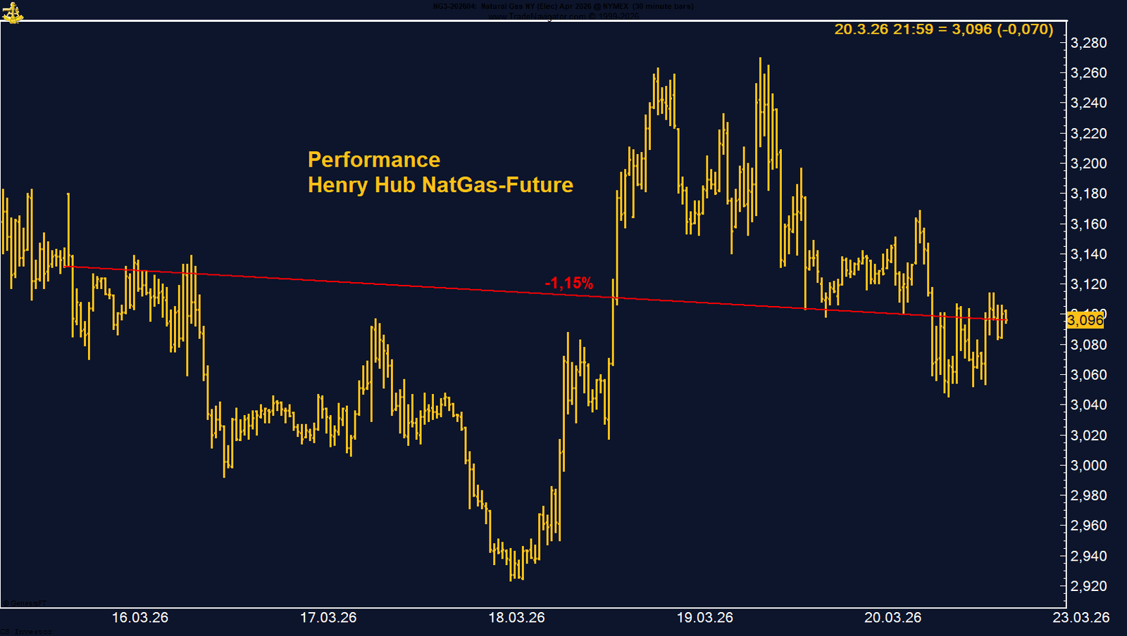 Der TTF-Future bleibt extrem volatil und klar geopolitisch getrieben. Die niedrigen Speicherstände und die Unsicherheit bei den Lieferströmen halten die Risikoprämie hoch. Das Short-Engagement bleibt damit anspruchsvoll und stark headline-abhängig.