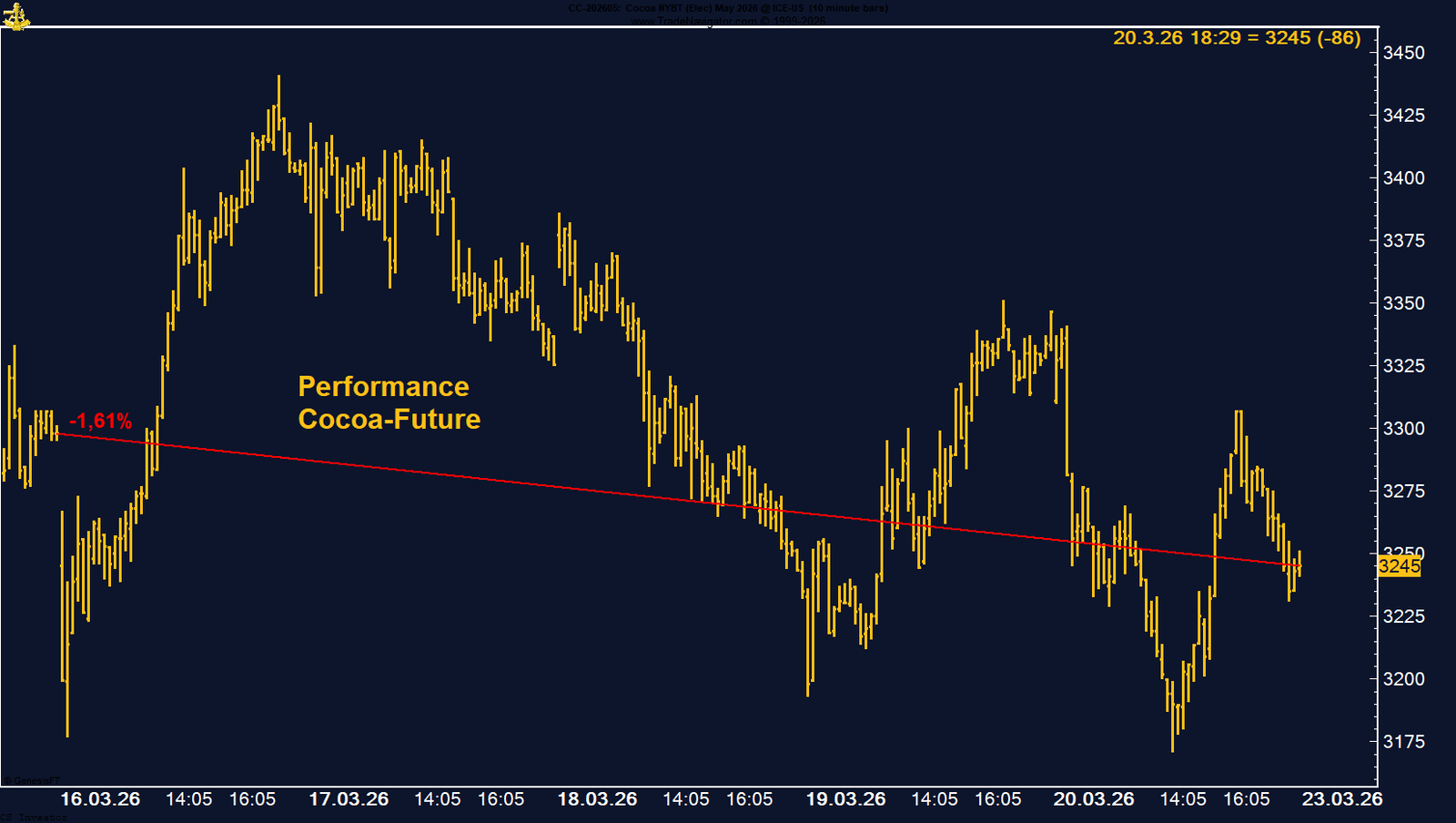 Fundamental bleibt die Lage gemischt. Verbesserte Wetterbedingungen in wichtigen Anbauregionen Westafrikas stützen die Perspektive einer stabileren Produktion, während gleichzeitig hohe Lagerbestände und eine zuletzt verhaltene Nachfrage preisdämpfend wirken. Diese Faktoren begrenzen kurzfristig das Aufwärtspotenzial und sorgen dafür, dass Erholungsversuche bislang nur von kurzer Dauer waren.
