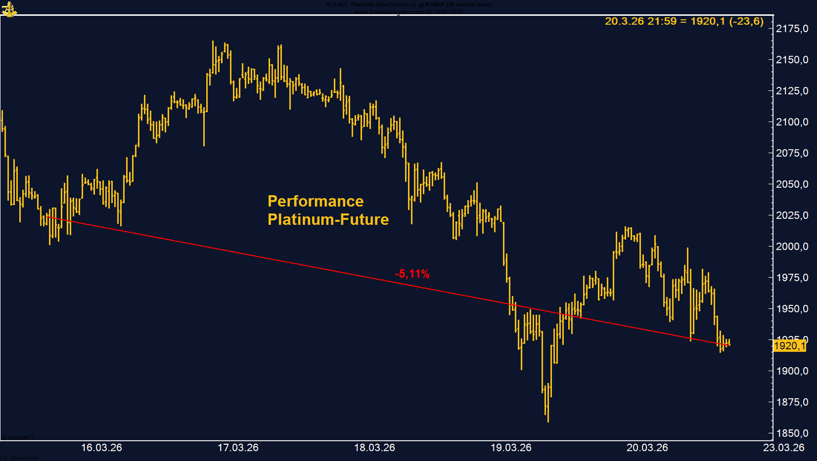 Auch aus saisonaler Sicht ergibt sich ein konstruktiveres Bild. Historisch weist der Platinum-Future in den kommenden Monaten eine positive Tendenz auf, mit erhöhten Chancen für steigende Notierungen bis in den Frühsommer hinein. Damit könnte die aktuelle Schwächephase eher als Konsolidierungsphase innerhalb eines übergeordneten saisonalen Aufwärtstrends interpretiert werden.