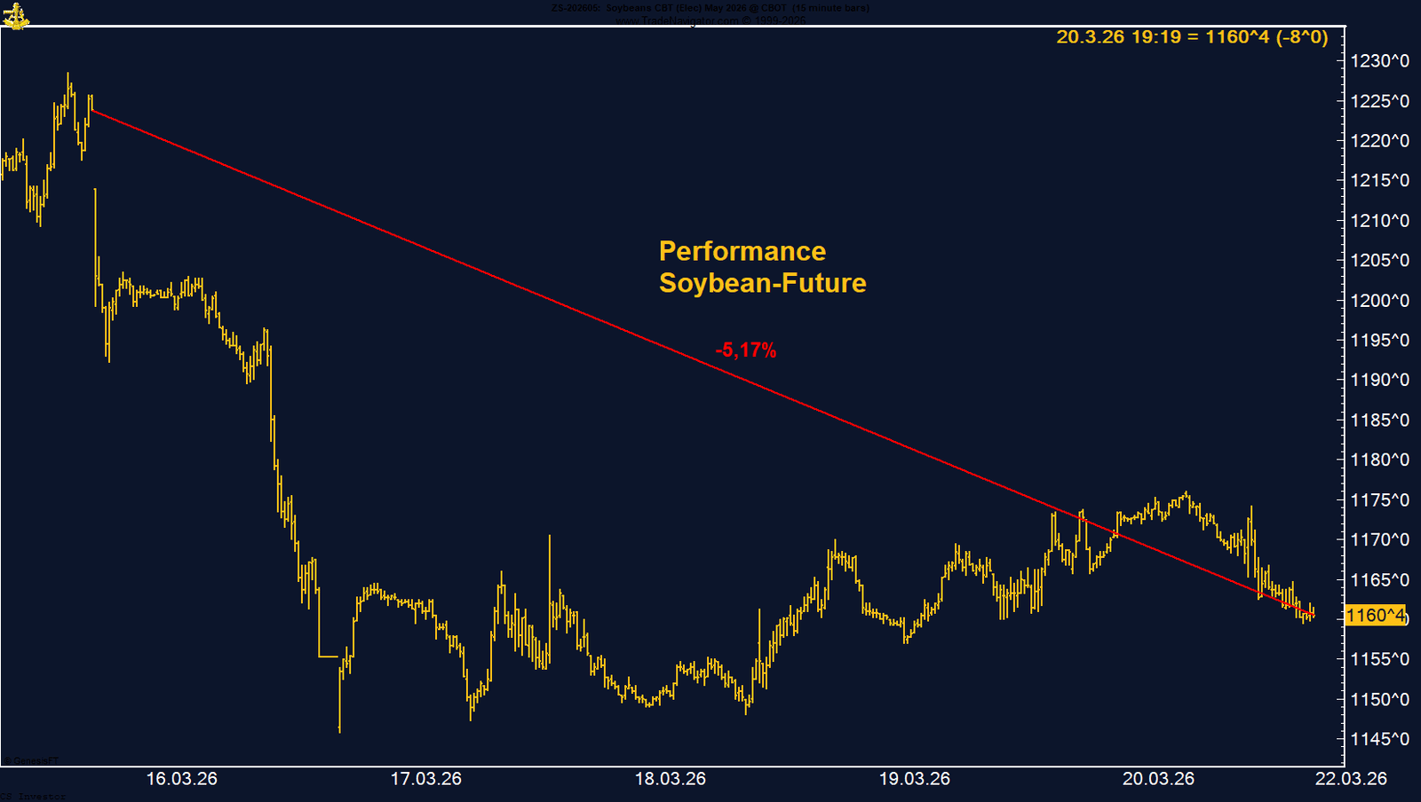 Aus saisonaler Sicht bleiben die Perspektiven für Sojabohnen konstruktiv. Historisch betrachtet bestehen gute Chancen für steigende Notierungen bis weit in die Sommermonate hinein. Entscheidend wird sein, ob sich die geopolitische Lage stabilisiert und damit wieder mehr Vertrauen in die globale Nachfrageentwicklung zurückkehrt.