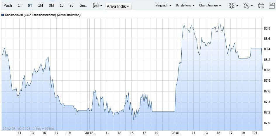 Der jüngste Rücksetzer bei den CO₂-Emissionsrechten ist als konsolidierende Bewegung in einem weiterhin konstruktiven Umfeld zu werten. Die sinkenden Auktionsvolumina für 2026 und die Erwartung eines Marktdefizits stützen das mittelfristige Bild. Solange sich an der Angebotsstruktur nichts ändert, bleiben EUA fundamental gut unterstützt.