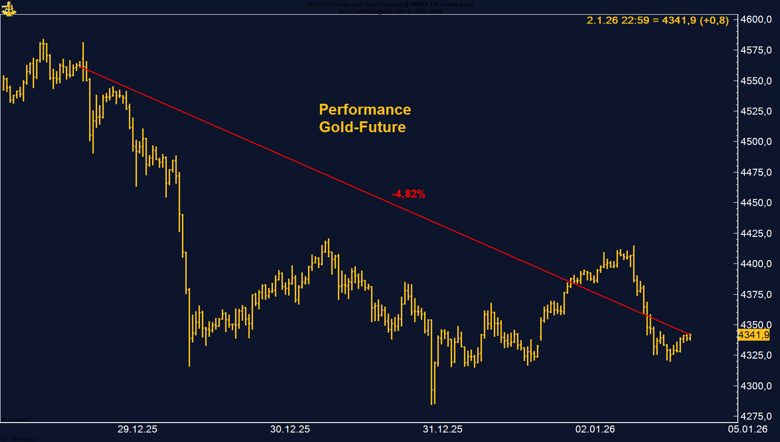 Der kräftige Wochenrückgang ist als notwendige Konsolidierung nach einer extrem starken Rallye zu werten, verstärkt durch marginbedingten Verkaufsdruck. Weder Positionierung noch geopolitisches Umfeld sprechen derzeit für einen strukturellen Trendbruch. Solange die Unsicherheiten bestehen, bleibt Gold ein zentraler Anker, auch wenn kurzfristig weitere Schwankungen und eine Phase der Beruhigung einkalkuliert werden müssen.