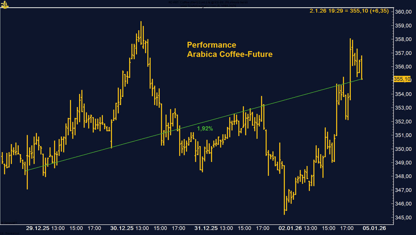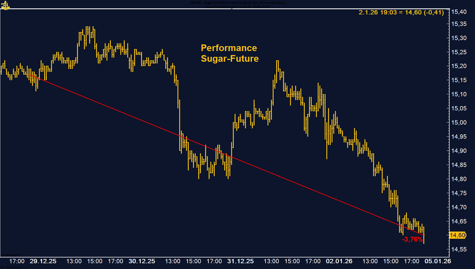 Gleichzeitig zeigte sich, dass andere Segmente des Index deutlich stabiler blieben. Agrarmärkte wie Baumwolle, Kaffee oder Mais entwickelten sich vergleichsweise ruhig, teils sogar konstruktiv, während Energiepreise durch Sentimentextreme und geopolitische Schlagzeilen geprägt waren. Insgesamt war es eine Woche, in der Liquidität, Margin-Mechanik und Positionsbereinigung die Preisbildung stärker beeinflussten als klassische Fundamentaldaten.