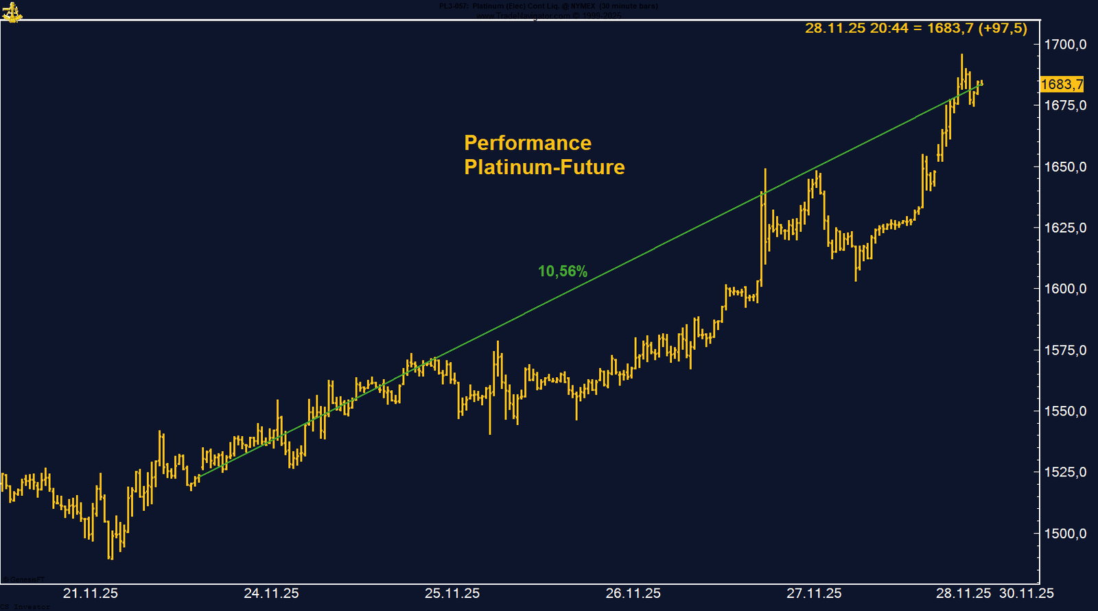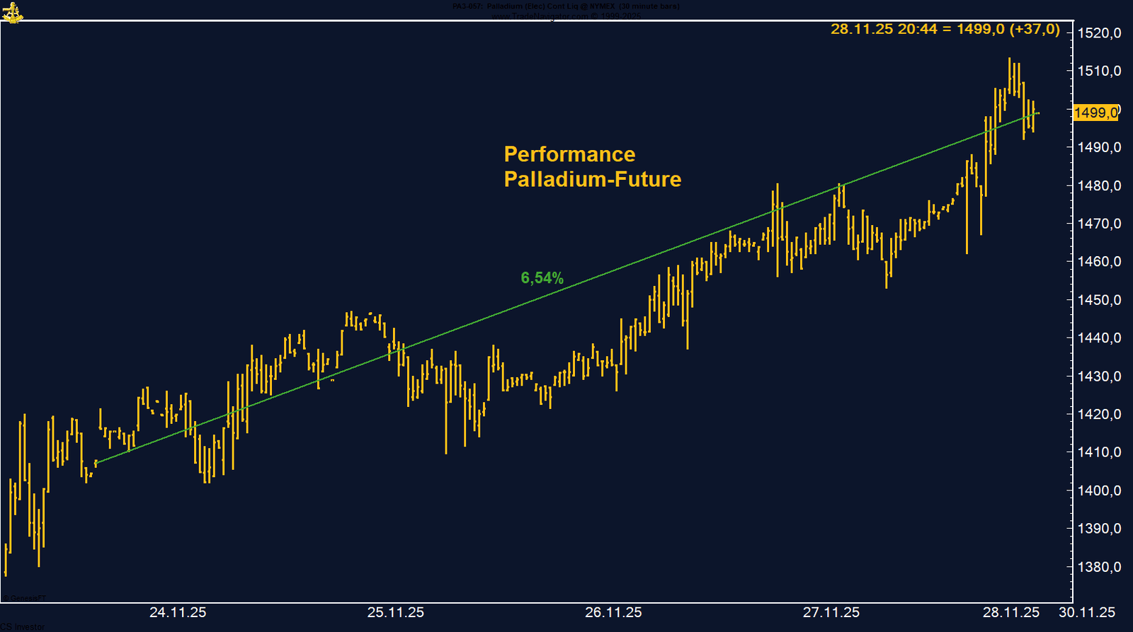 Palladium hat in der vergangenen Woche mehr als nur eine technische Erholung gezeigt – der Markt sendet ein Signal, dass sich die strukturellen Rahmenbedingungen zugunsten eines neuen Aufwärtstrends verschieben könnten. Eine mögliche Verschiebung des EU-Verbrennerverbots würde die Nachfrage nachhaltig stützen und Palladium erneut in eine strategische Schlüsselrolle heben. Solange der Future oberhalb von 1.480–1.500 US-Dollar bleibt, ist das Momentum klar positiv. Für Trader eröffnet sich ein überzeugendes Setup: Palladium steht möglicherweise am Beginn einer neuen zyklischen Aufwärtsphase, getragen von politischer Dynamik, Angebotsrisiken und einem zunehmend konstruktiven globalen Metallumfeld.