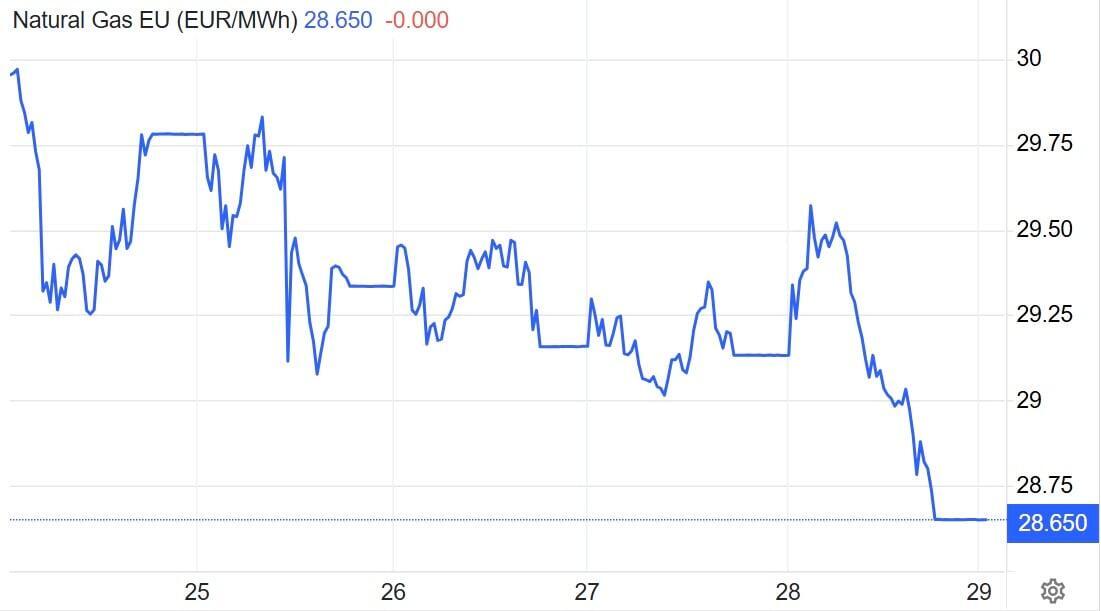 Massiver Druck unter €30 trotz niedriger Speicherstände. Markt ignoriert strukturelle Risiken – Setup extrem fragil.
