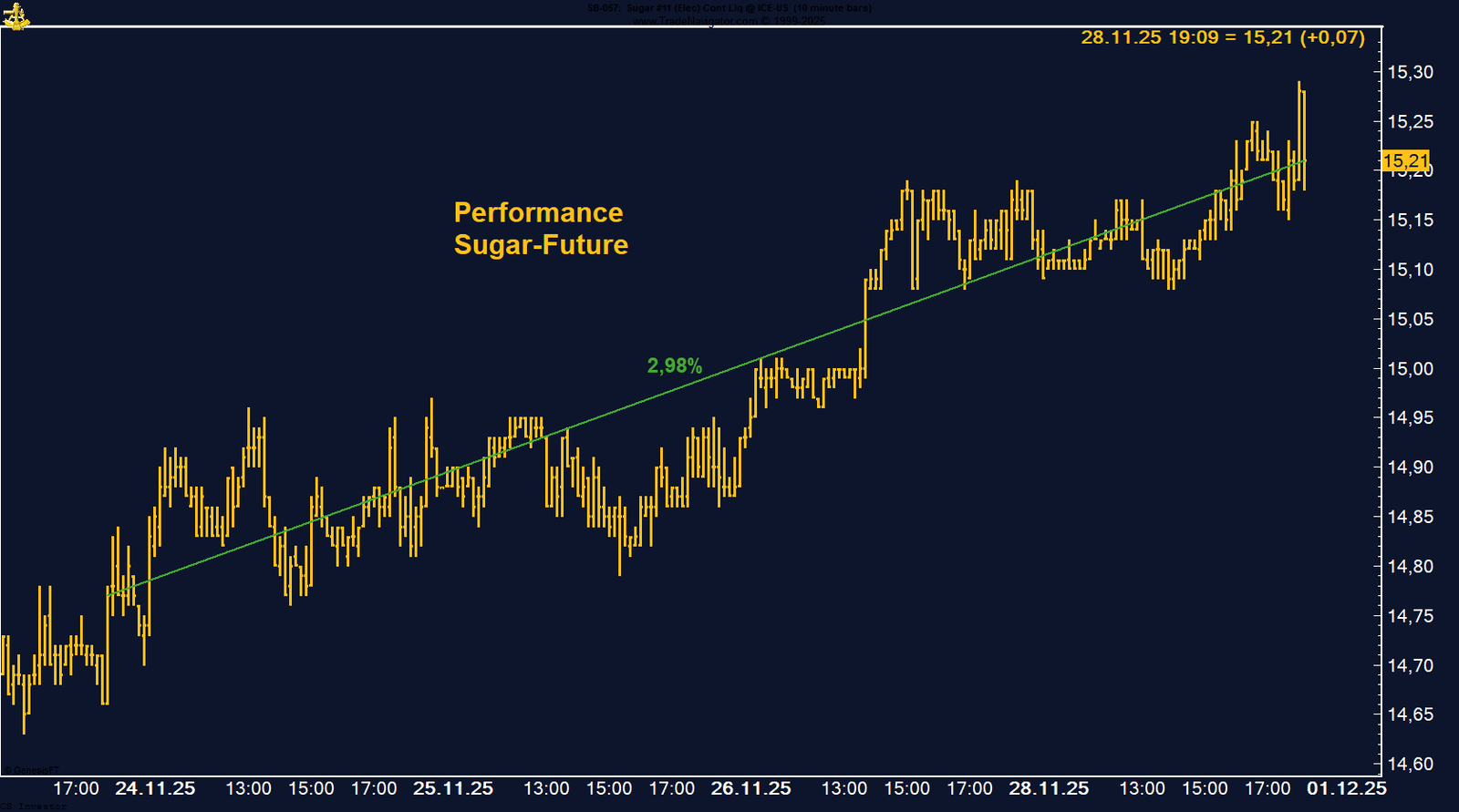 Zucker gewinnt auf Wochenbasis +2,98%.