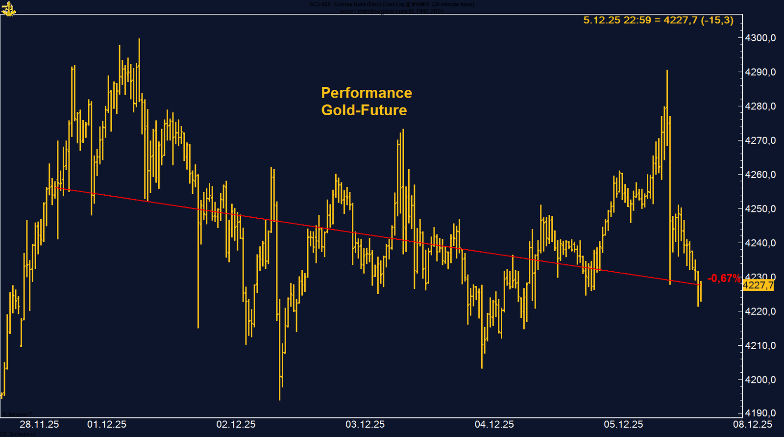 Gold hält sich auf hohem Niveau, die Long-Positionierung ist stark und die saisonalen Rückenwinde starten jetzt. Unser bullisches Jahresend-Setup bleibt voll intakt – die Wahrscheinlichkeit höherer Kurse bis Silvester ist klar gegeben.