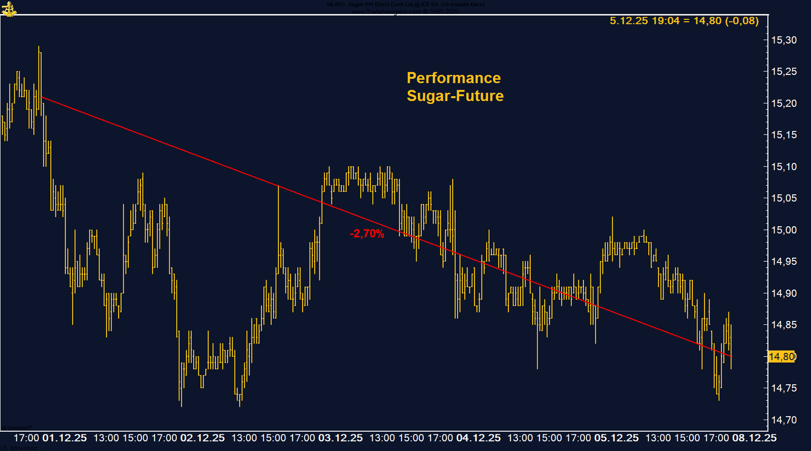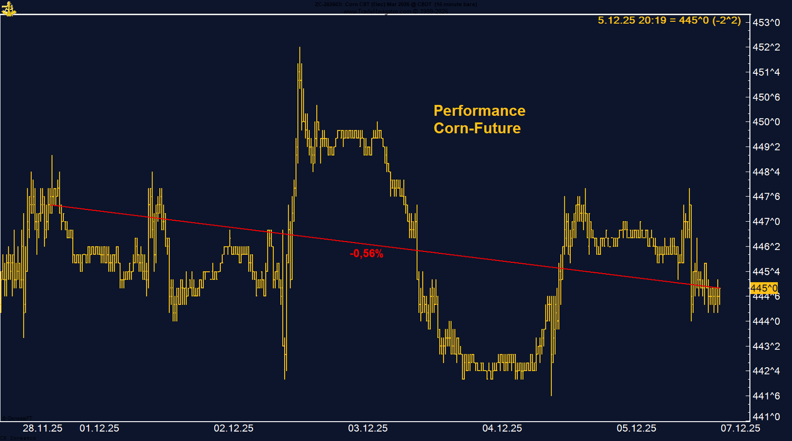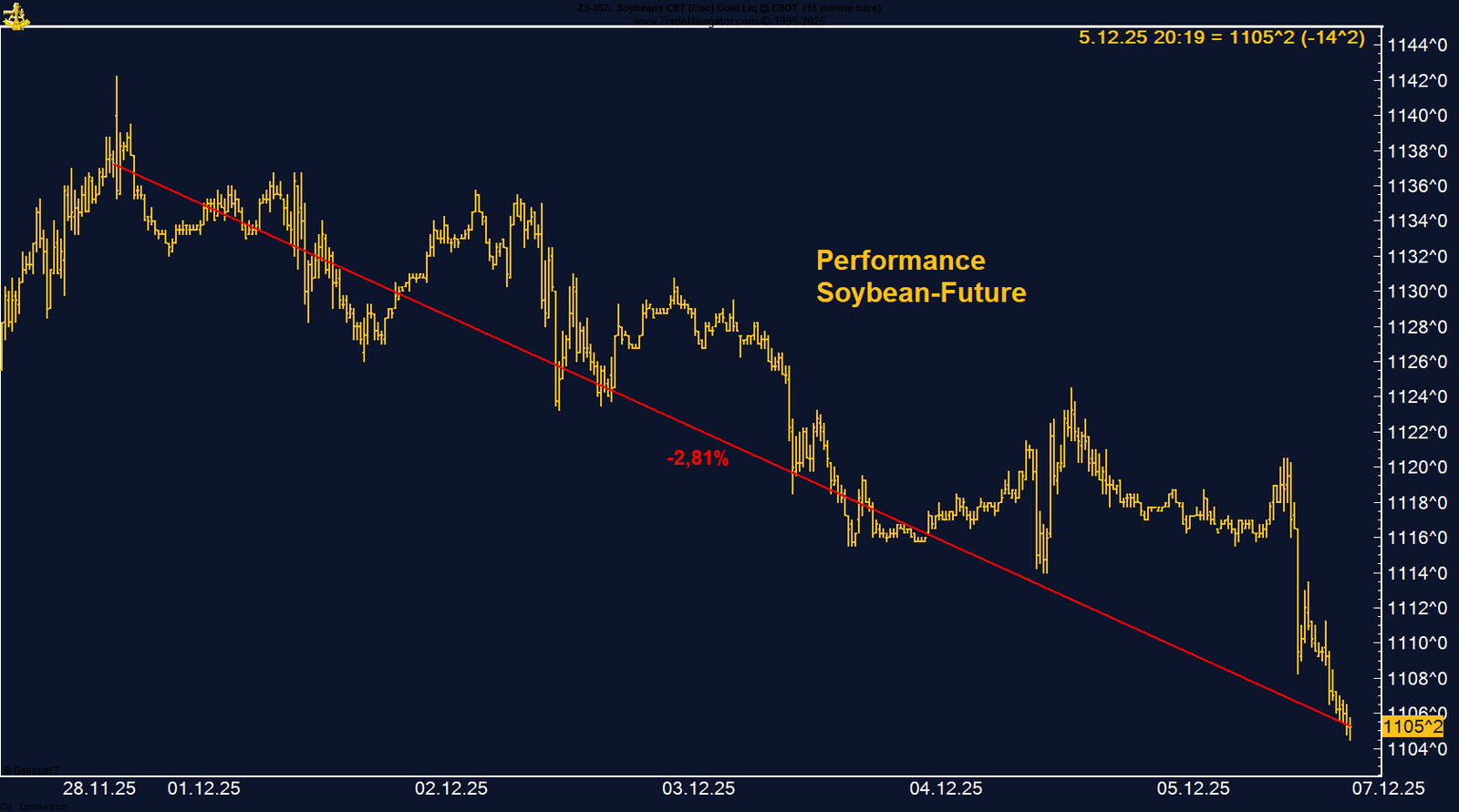 Die Schwäche der vergangenen Woche ist eher handelstechnischer Natur als strukturell. Die rekordhohe Long-Positionierung der Fonds und die Saisonalität sprechen klar für eine positive Bias in die kommenden Wochen. Wir halten den Sojabohnen-Future auf der Watchlist für einen Turnaround, sobald die Preisdynamik wieder dreht.