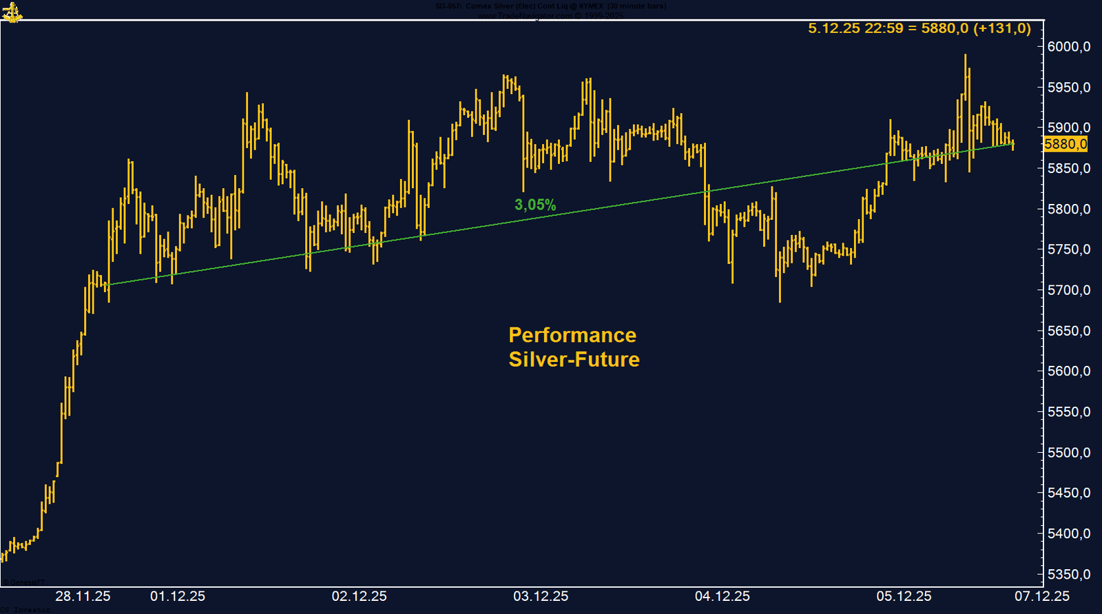 Wir bleiben klar auf der Long-Seite. Die Bestätigung über 58 USD und das neue All-Time-High wirken wie ein technischer Katalysator. Strukturelle Nachfrage, kritischer Rohstoffcharakter und saisonale Stärke sprechen für weiter steigende Kurse. Wir halten an unserem Szenario fest, dass der Silber-Future noch vor Jahresende die 60-USD-Marke nachhaltig überwindet – das Momentum steht voll auf unserer Seite.
