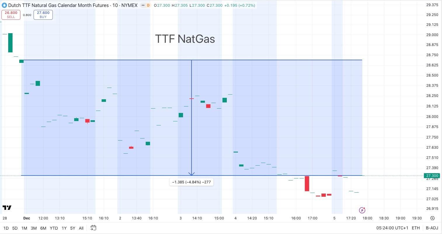 Weitere Schwäche auf neue Tiefs, obwohl der Winter noch bevorsteht – strukturelle Risiken werden vom Markt aktuell ausgeblendet.