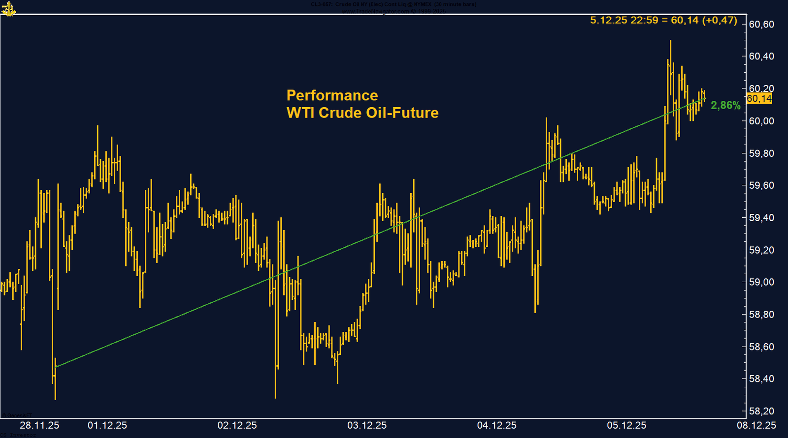 WTI Crude Oil gewinnt auf Wochenbasis +2,86%.
