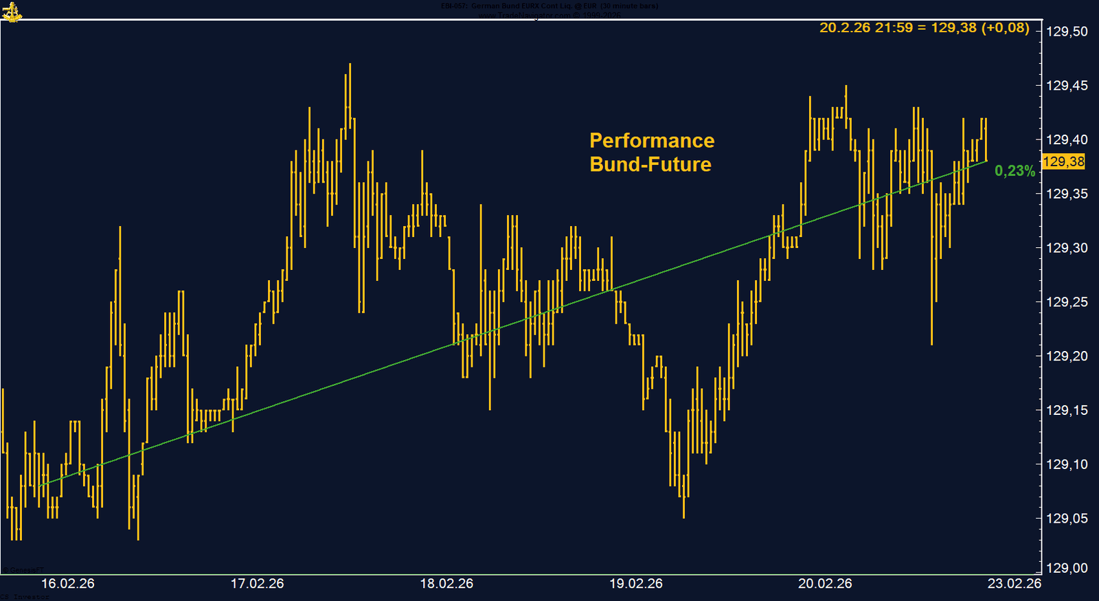 Trotzdem ist Vorsicht geboten: Die aktuelle Bewegung ist kein scharfer Spike, sondern eine langsame, technisch saubere Aufwärtsstruktur. Solange Risk-Off-Strömungen und Zinssenkungsfantasien im Markt präsent sind, kann sich der Bund in dieser oberen Range halten oder sogar noch leicht darüber hinauslaufen.