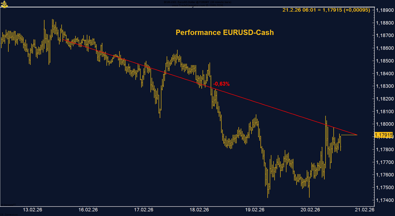 Auf Jahressicht ist das Bild ähnlich wie beim Dollar-Index: wenig Nettoveränderung, keine klare Trendstruktur. Kurzfristige Bewegungen gab es durchaus, doch per saldo bleibt der Markt in einer breiten Seitwärtsphase. Diese Zurückhaltung sehen wir derzeit auch in anderen Asset-Klassen. Aktien wirken angespannt, fallen aber nicht. Bitcoin zeigt latente Dynamik. Rohstoffe reagieren sensibel auf geopolitische Schlagzeilen. Es liegt eine gewisse Erwartung in der Luft – als würde der Markt auf ein Ereignis warten, das eine neue Richtung vorgibt. Die geopolitische Lage im Nahen Osten und die Möglichkeit eines militärischen Eingreifens der USA gegen den Iran verstärken diese latente Spannung zusätzlich.