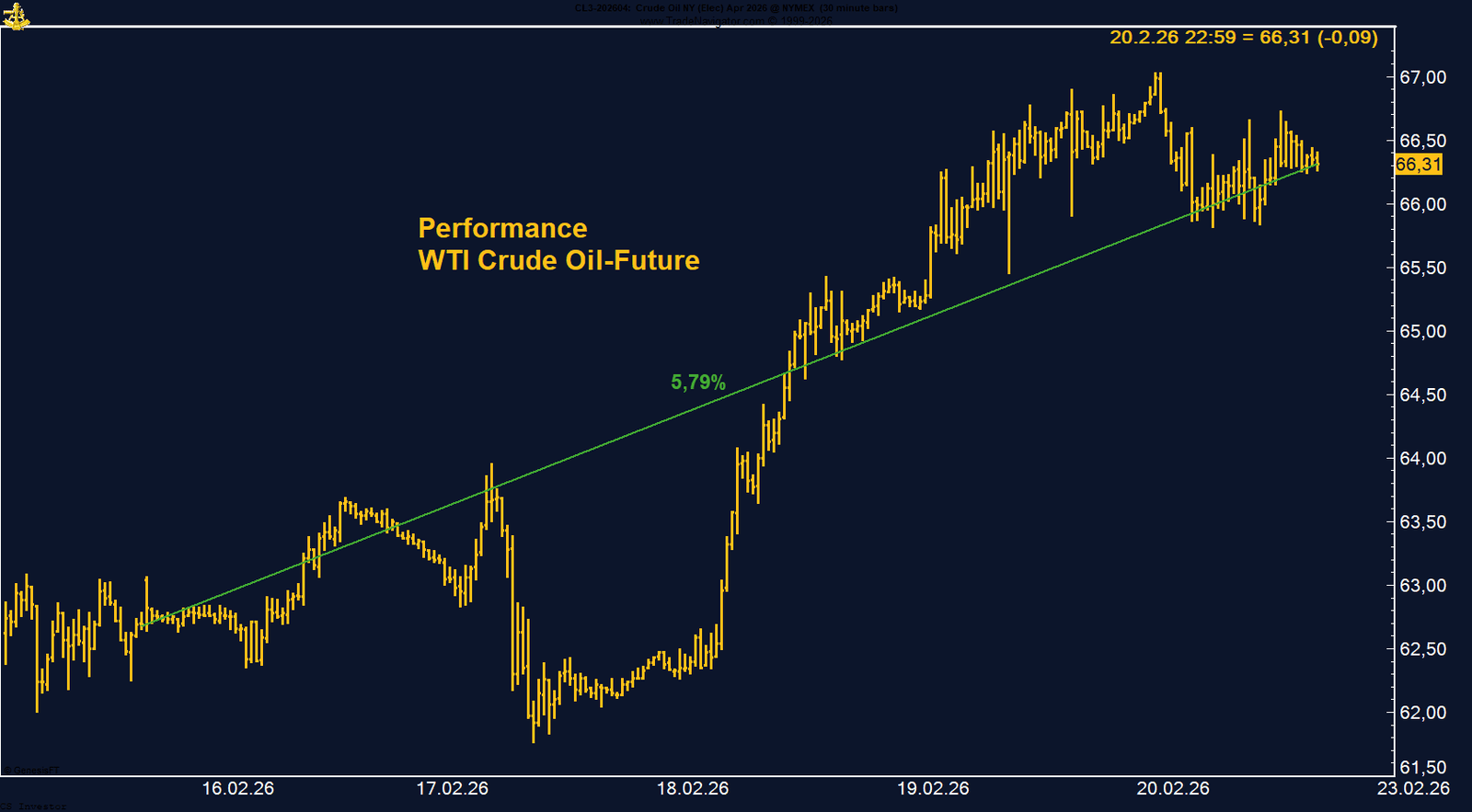 WTI Crude Oil gewinnt auf Wochenbasis +5,79%.