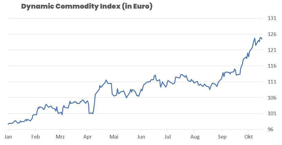 Der Dynamic Commodity Index (DCX) stieg um +1,51 % auf 124,39 Punkte (YTD: +28,10 %). Treiber waren klar die Edelmetalle (Silber, Gold, Palladium), flankiert von Kaffee und Kupfer. Energie blieb der Bremsklotz (WTI – dritte Verlustwoche, Henry Hub schwach, TTF seitwärts), während Agrars gemischt tendierten: Weizen stabilisierte sich über 500 ¢, Zucker fiel weiter. Auf der FX-Seite half der schwächere USD dem Rohstoffkomplex; EUR/USD legte leicht zu. Auffällig: Trotz der heftigen Gewinnmitnahmen am Freitagnachmittag blieben die Wochengewinne der Edelmetalle intakt – das „Risk-Off“-Gebot dominiert weiterhin.