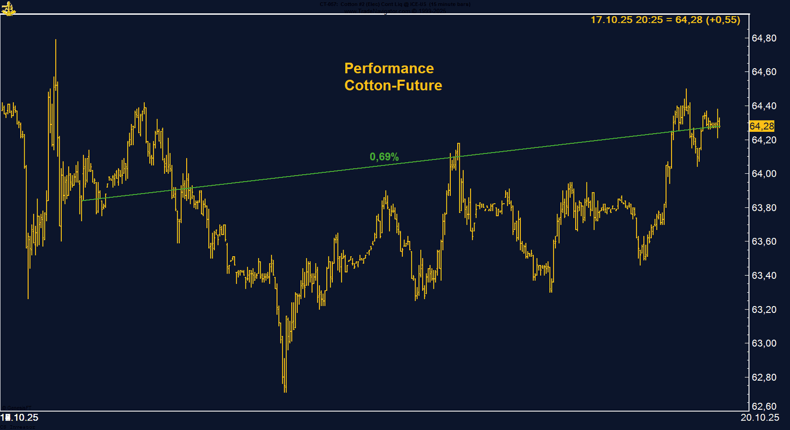 Saisonal nähert sich Baumwolle ihrem typischen Herbsttief – historisch ein Zeitraum, in dem sich häufig attraktive Long-Setups ergeben. Ab Ende November beginnt traditionell die stärkste Phase bis in den März hinein. Sollte die saisonale Struktur auch dieses Jahr greifen, könnte Baumwolle in den kommenden Wochen vor einer interessanten Aufwärtsbewegung stehen.