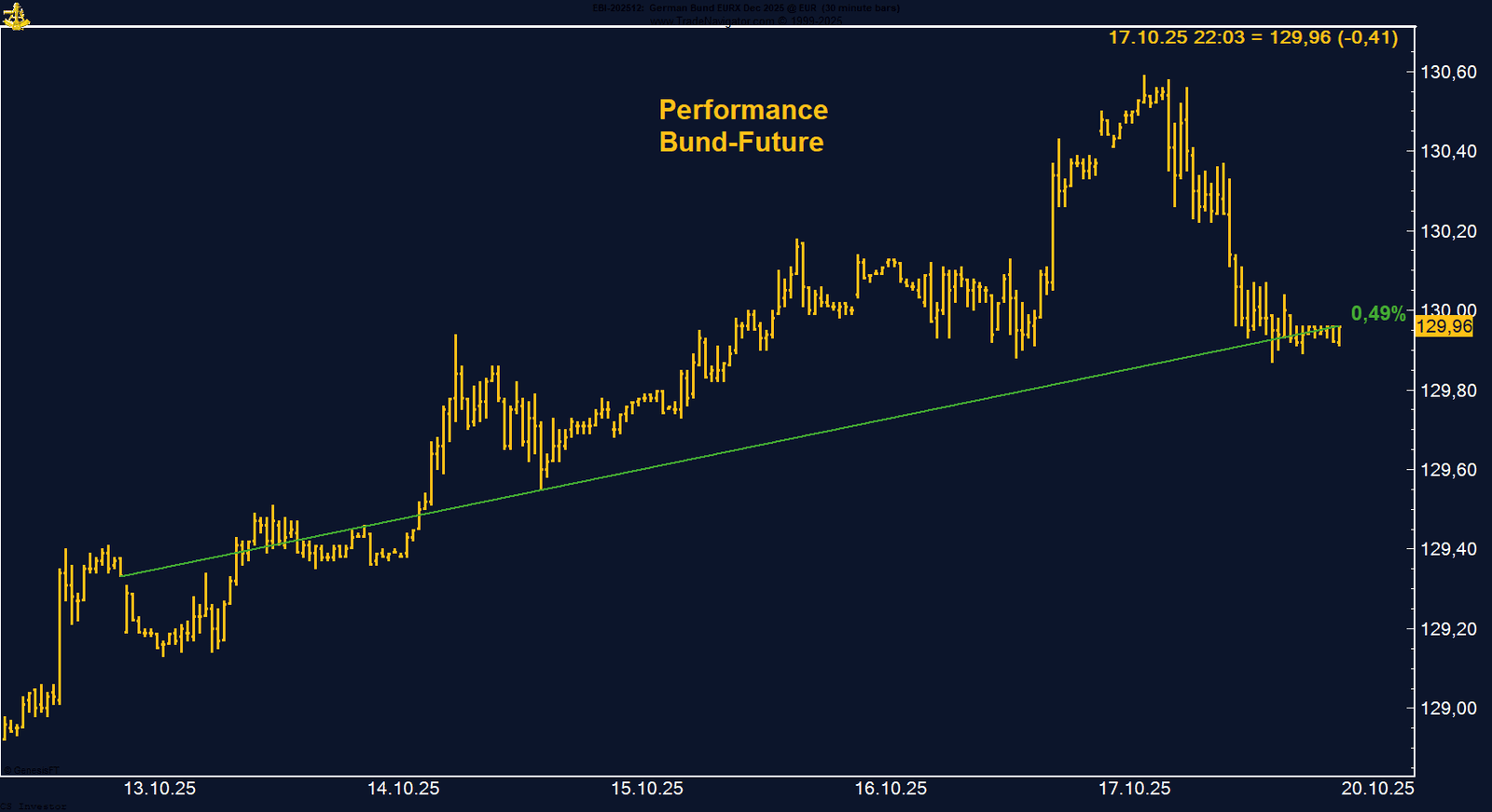 Der Bund-Future bleibt im Spannungsfeld zwischen geopolitischer Unsicherheit und geldpolitischer Hoffnung. Solange die Marke von 130 verteidigt wird, überwiegt das Abwärtsrisiko, insbesondere wenn die Märkte zunehmend auf eine Entspannung im US-China-Konflikt setzen. Ein nachhaltiger Ausbruch darüber wäre dagegen ein Signal für eine erneute Flucht in Sicherheit – doch aktuell bleibt der Future gefangen zwischen Risikoappetit und Absicherungsdruck.