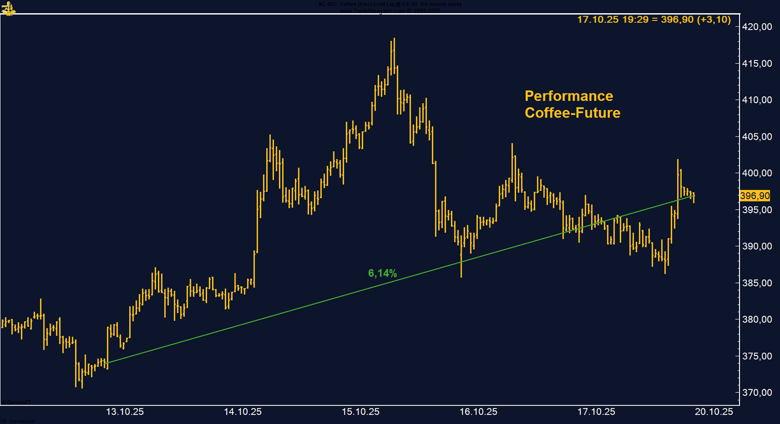 ICE-Bestände sinken, Wetterrisiken (Brasilien) & Short-Covers treiben – Pullbacks bleiben kaufbar.