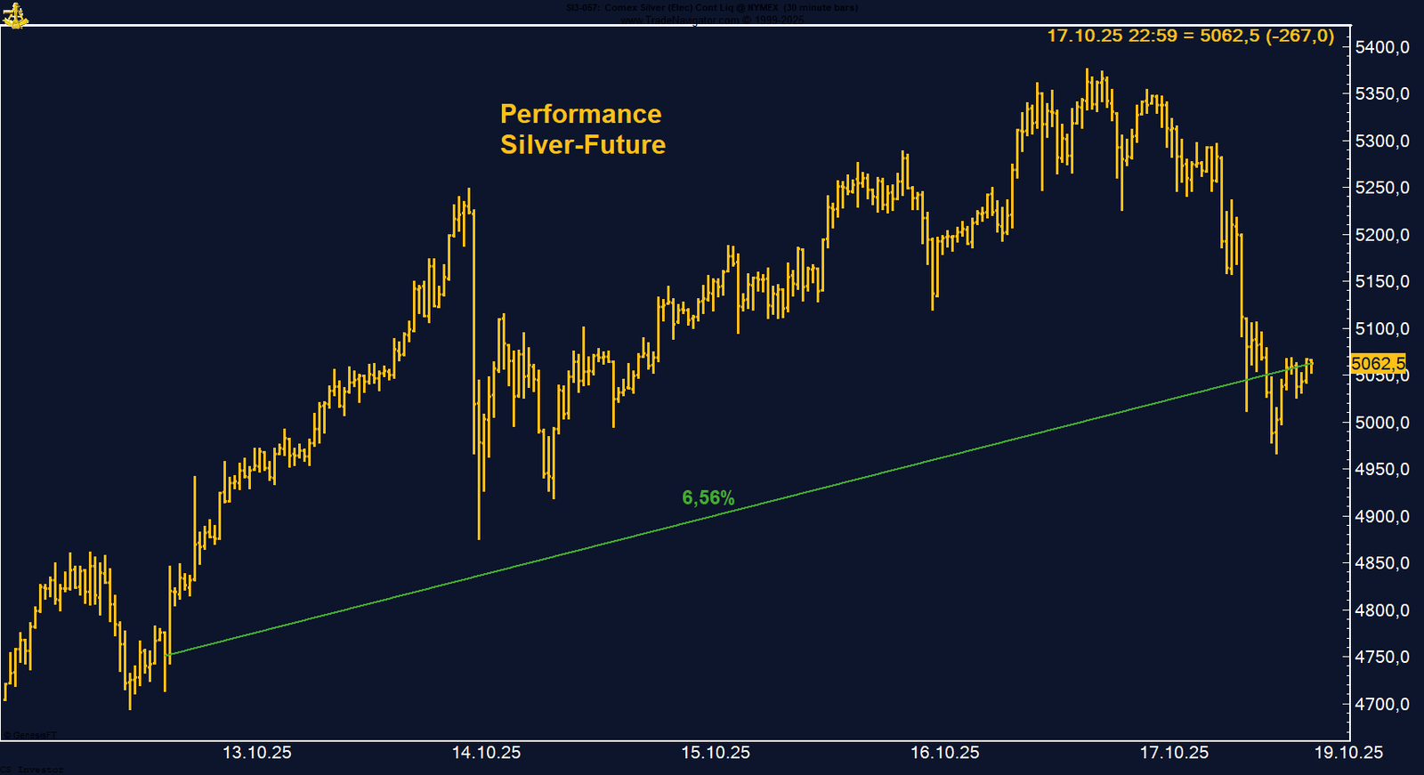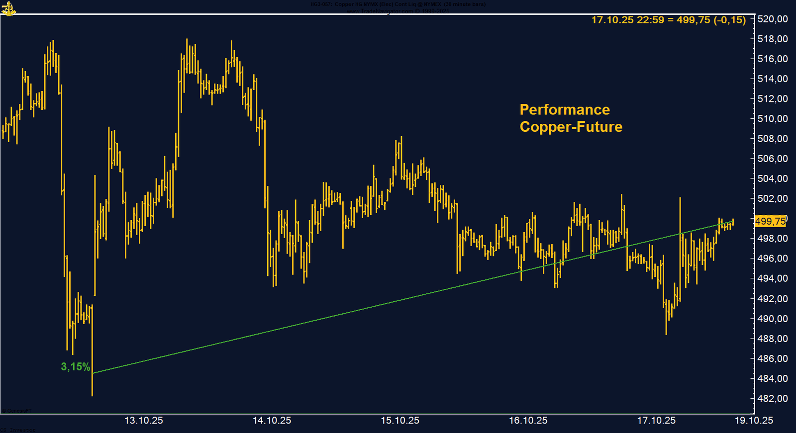 Silber bleibt eines der dynamischsten Edelmetalle des Jahres 2025. Trotz der spürbaren Korrektur zum Wochenschluss ist das Momentum weiterhin intakt – getragen von anhaltender physischer Knappheit, geopolitischen Risiken und geldpolitischem Rückenwind. Kurzfristige Rücksetzer könnten daher erneut Kaufgelegenheiten bieten, solange die Marke von 50 USD verteidigt wird. Ein nachhaltiger Ausbruch über 54 USD würde den Weg für eine Fortsetzung der Superrally im Winter ebnen.