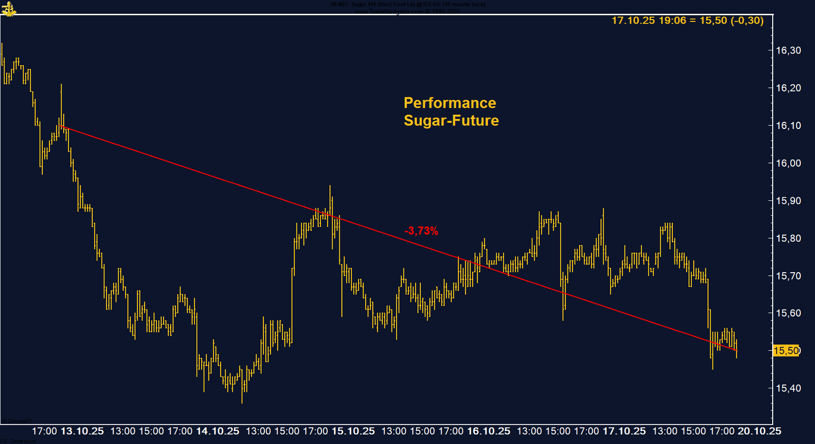 Der Zuckerpreis steht weiter unter massivem Druck – getragen von Rekordernten, globalem Überangebot und nachlassender Nachfrage. Kurzfristige technische Gegenbewegungen bleiben möglich, doch das fundamentale Bild ist klar bearish. Erst eine deutliche Produktionsdrosselung oder witterungsbedingte Ausfälle könnten den Markt in den kommenden Monaten wieder stabilisieren. Bis dahin gilt: Die Bären haben das Kommando, und der süße Rohstoff bleibt bitter.